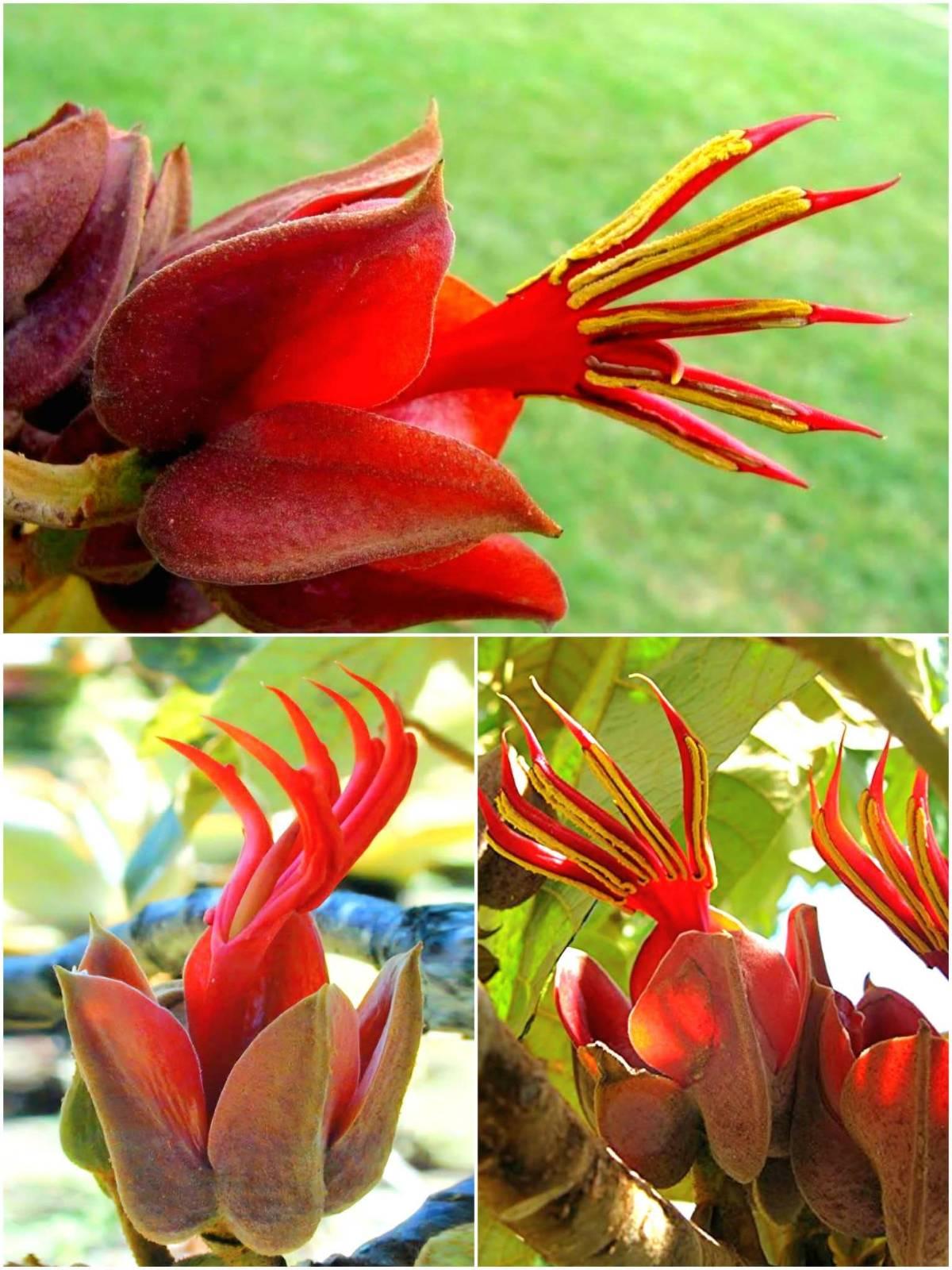 🖐ส่วนที่ดูเหมือนนิ้วมือสีแดง 5 นิ้วนั้น แท้จริงแล้วไม่ใช่กลีบดอก แต่คือ เกสรตัวผู้ (Stamens) ที่ยื่นยาวออกมาและโค้งงอจนดูเหมือนกรงเล็บหรือมือคน
