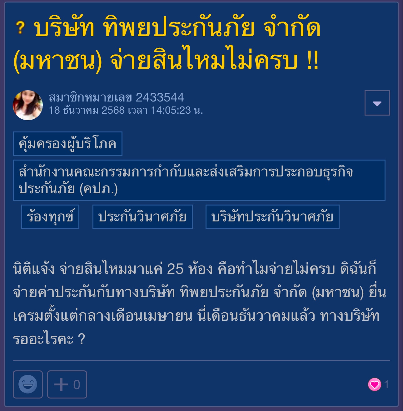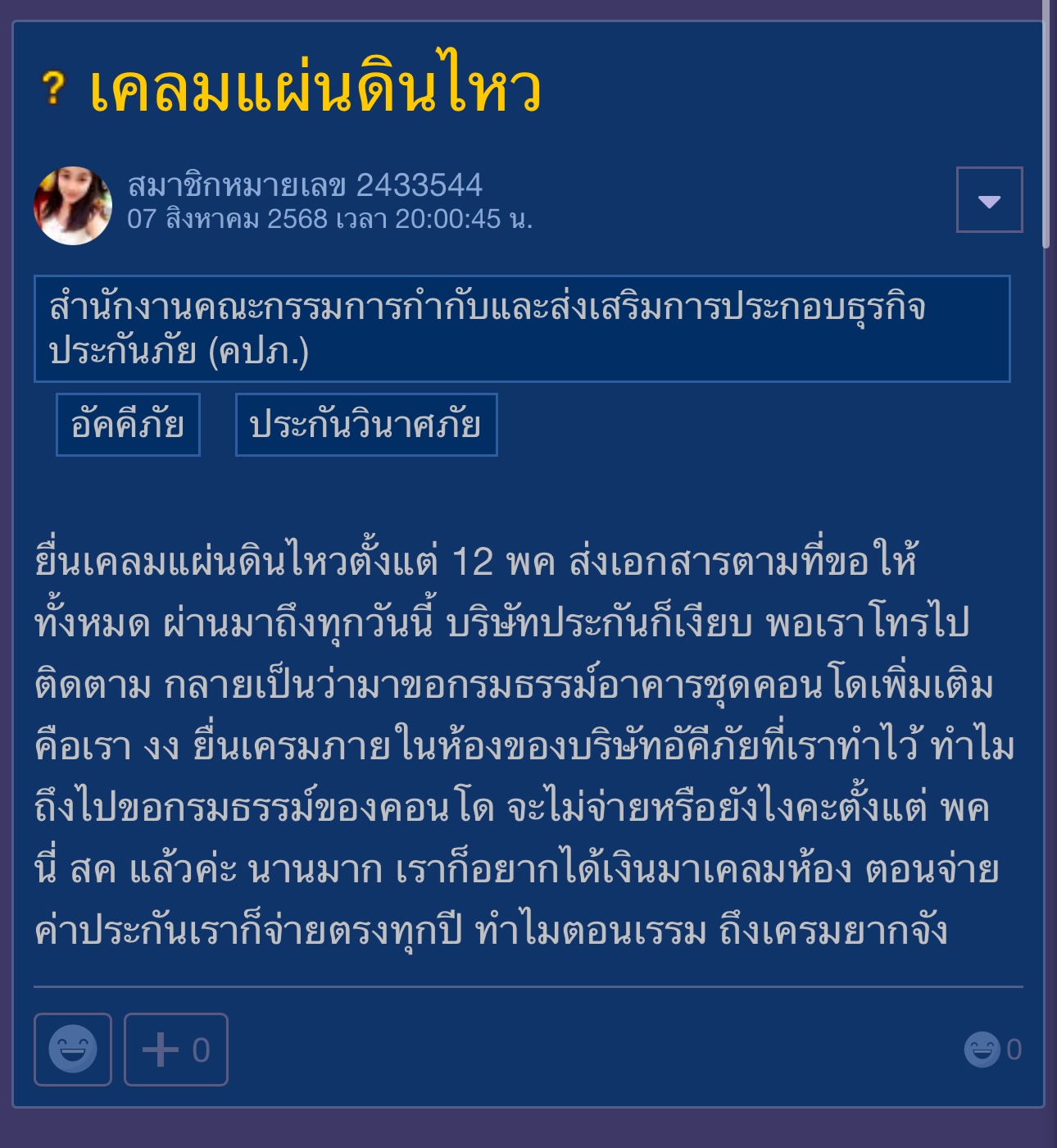 ยื่นเคลมแผ่นดินไหว กับ ทิพยประกันภัย 8 เดือนล่ะ ยังไม่จ่าย