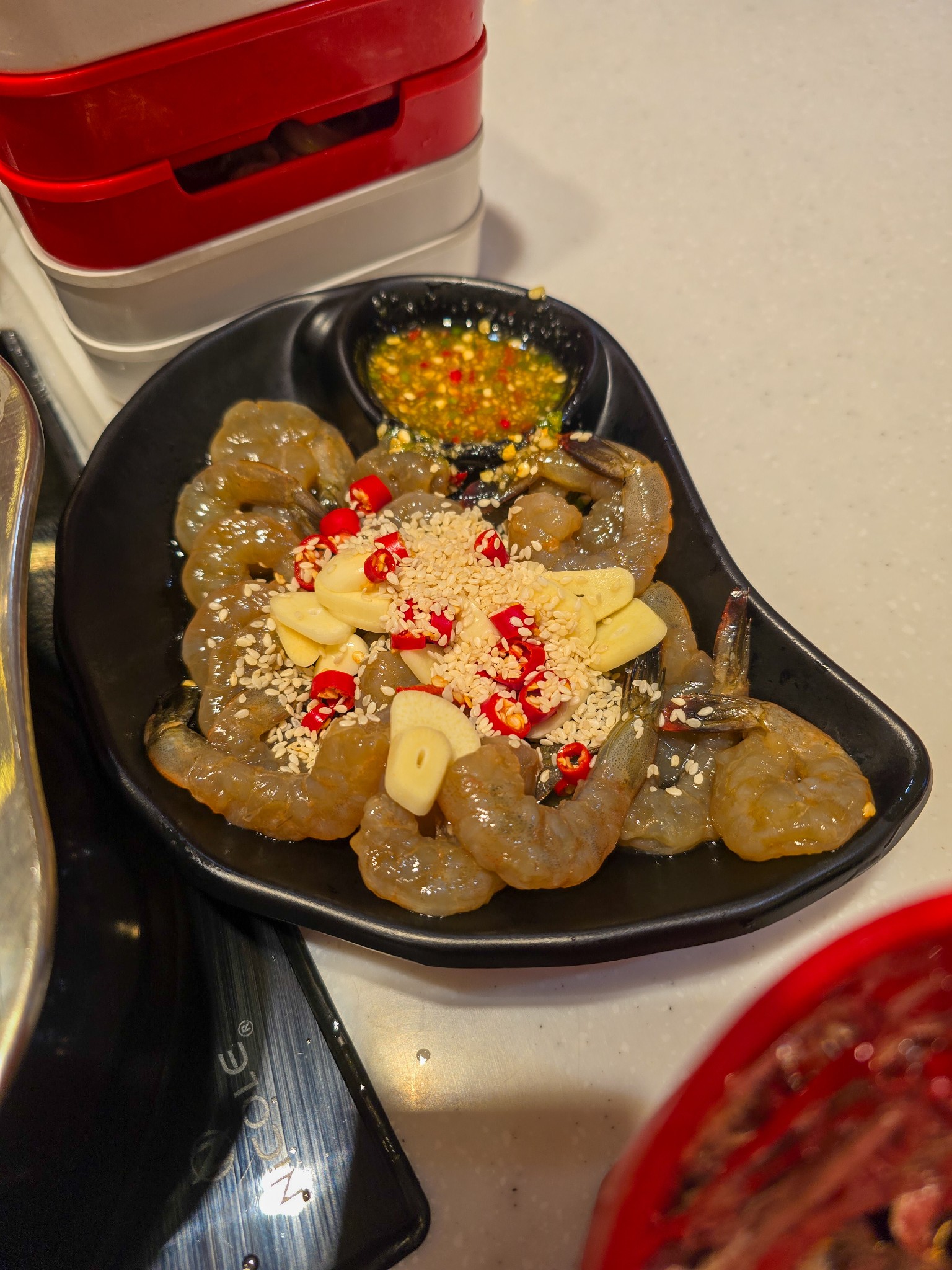 รอบนี้ในเซตมี "กุ้งดอง" มาให้ด้วย แฟนผมชอบมาก จัดไป 7 ที่ ตัวกุ้งดองเข้าเนื้อดี มีสาหร่ายมาให้ห่อตัดเลี่ยน ตินิดเดียวตรงจานหลังๆ เหมือนยัง Defrost ไม่ค่อยดี มีน้ำแข็งติดมานิดหน่อย แต่รวมๆ เทียบกับราคาคือคุ้มมากครับ
