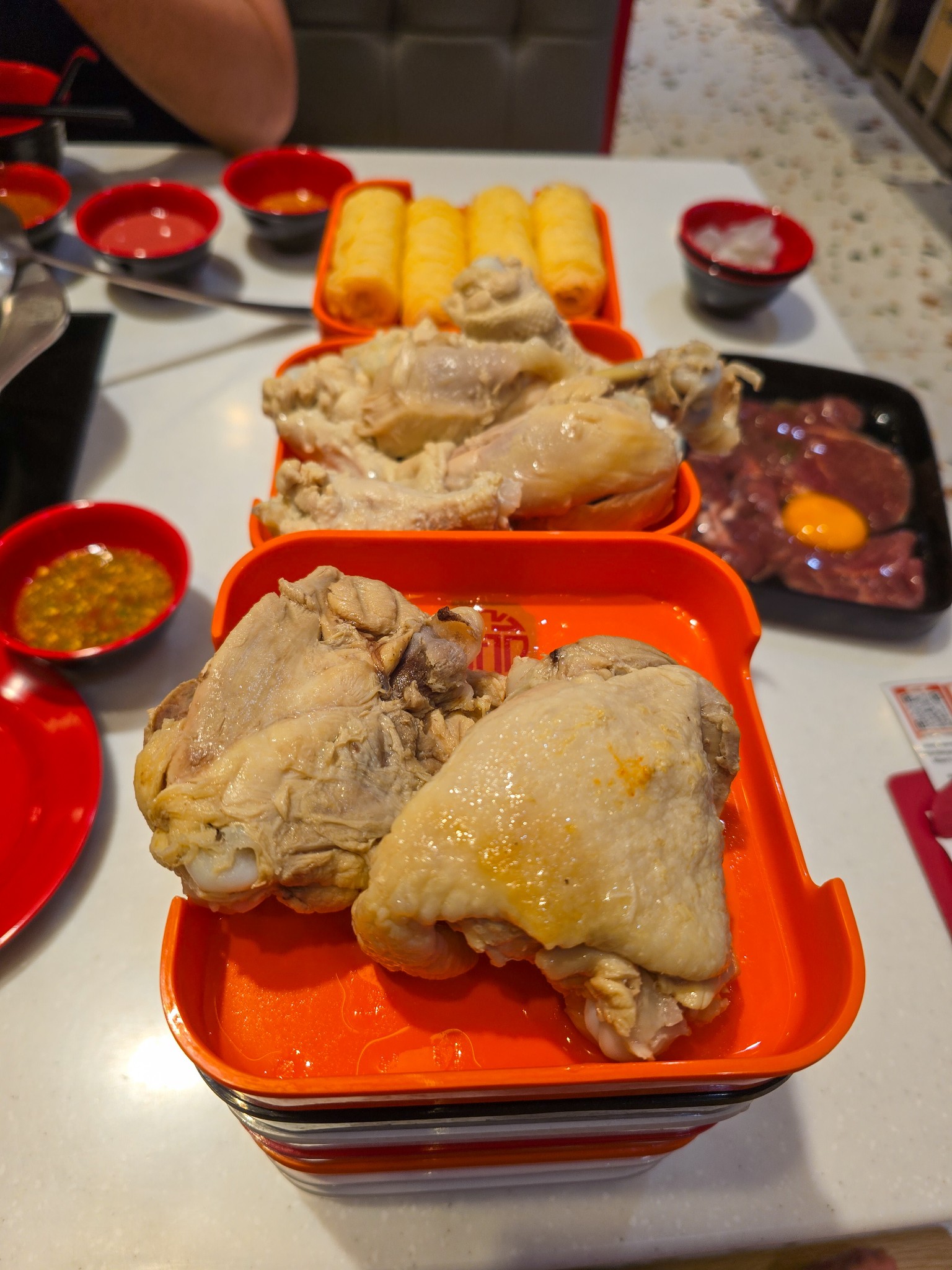 ซุปใหม่ประจำซีซั่น รสชาติจะออกเปรี้ยวนำ มีหอมเจียวกับพริกแห้งมาให้ (ขอเพิ่มได้ถ้าชอบจัดจ้าน) จะมีน่องไก่ สะโพกไก่ ปีกบนไก่มาให้สั่งด้วยครับ ต้มมาสุกแล้ว แต่รสชาติแอบจืดไปนิดเหมือนต้มน้ำธรรมดามาแล้วค่อยมาลงซุปแซ่บ ส่วนตัวผมยังเทใจให้ซุปสุกี้อีสานมากกว่านิดนึงครับ