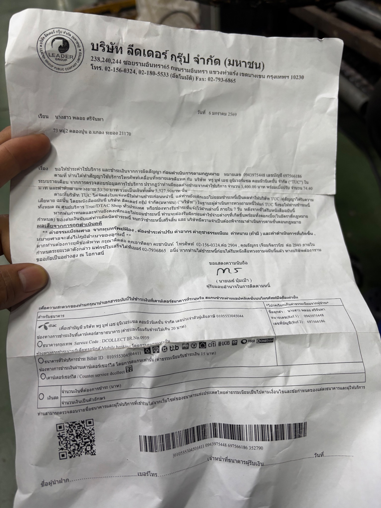 ได้รับจดหมายทวงหนี้ จากลีดเดอร์กรุ๊ป