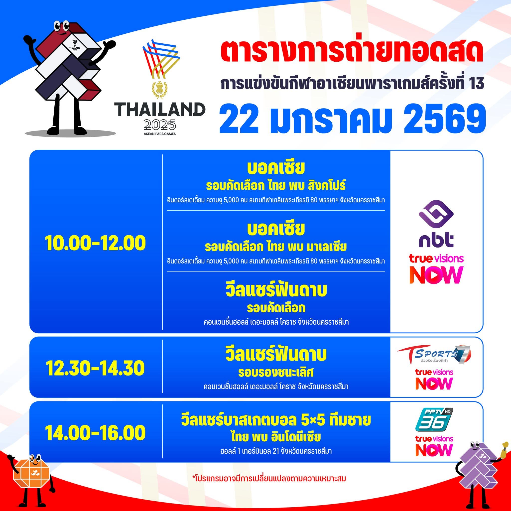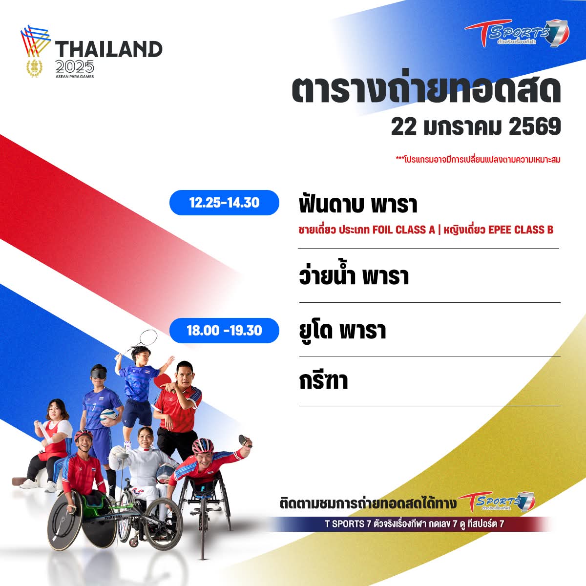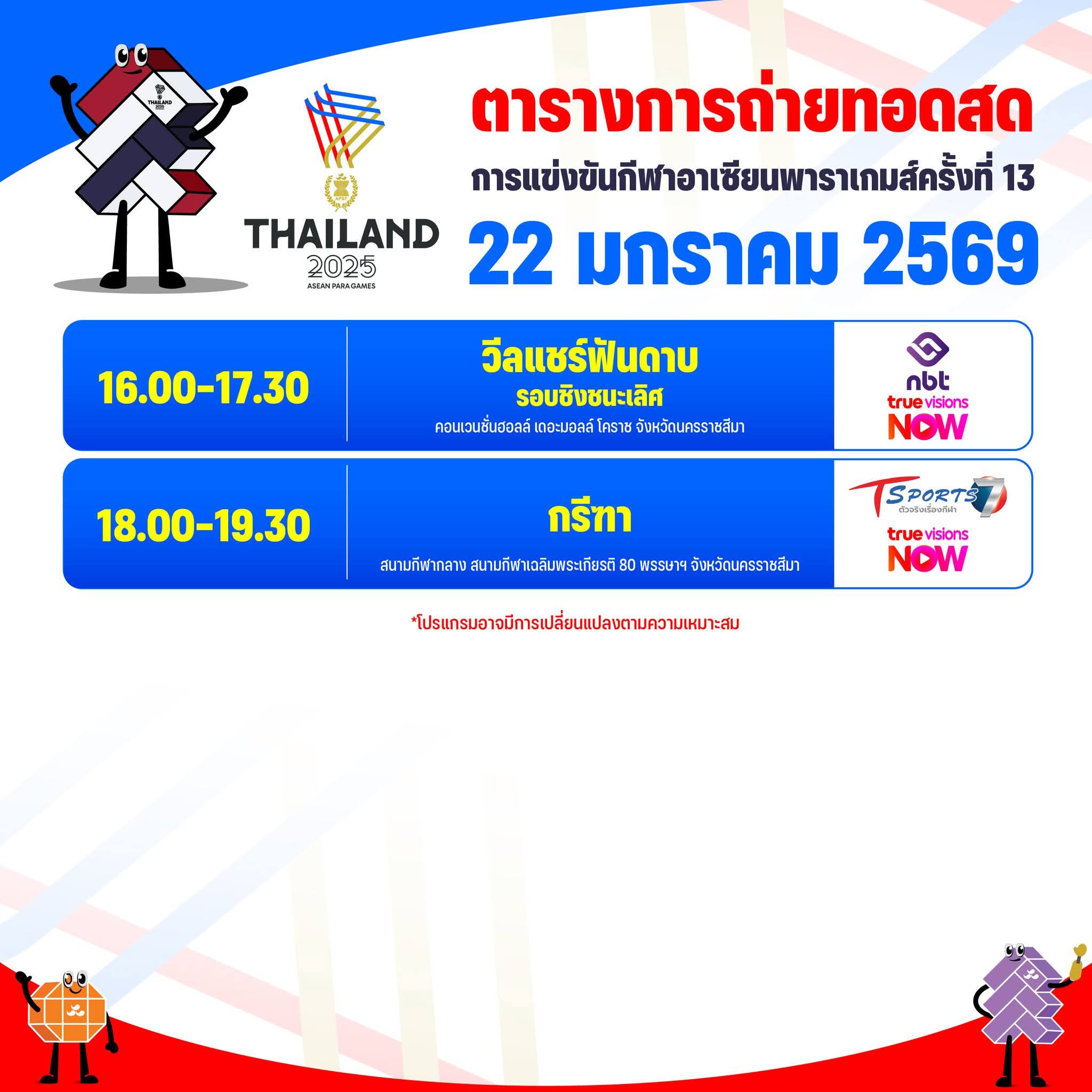 โปรแกรมอาเซียนพาราเกมส์ วันที่19 ม.ค 69