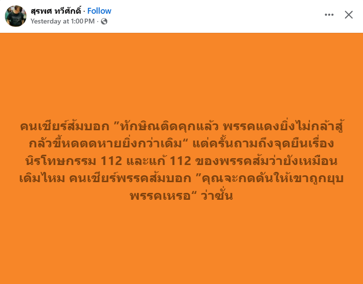 https://www.facebook.com/share/p/1Ac1vXNPtQ/ “เพนกวิน” นักเคลื่อนไหวทางการเมืองชื่อดัง โพสต์ถึง “อ.เจษฎ์” แคนดิเดตนายกฯ #พรรครักชาติ หลังโชว์รำดาบต่อหน้าพระบรมรูปพระเจ้าตาก