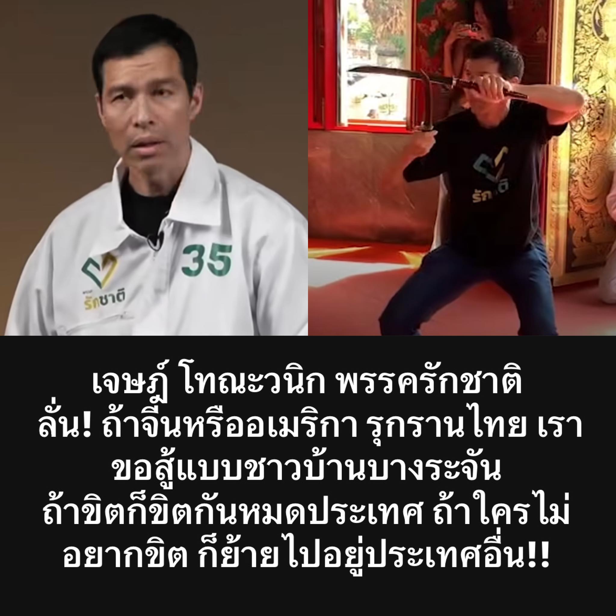 https://www.facebook.com/share/p/1Ac1vXNPtQ/ “เพนกวิน” นักเคลื่อนไหวทางการเมืองชื่อดัง โพสต์ถึง “อ.เจษฎ์” แคนดิเดตนายกฯ #พรรครักชาติ หลังโชว์รำดาบต่อหน้าพระบรมรูปพระเจ้าตาก