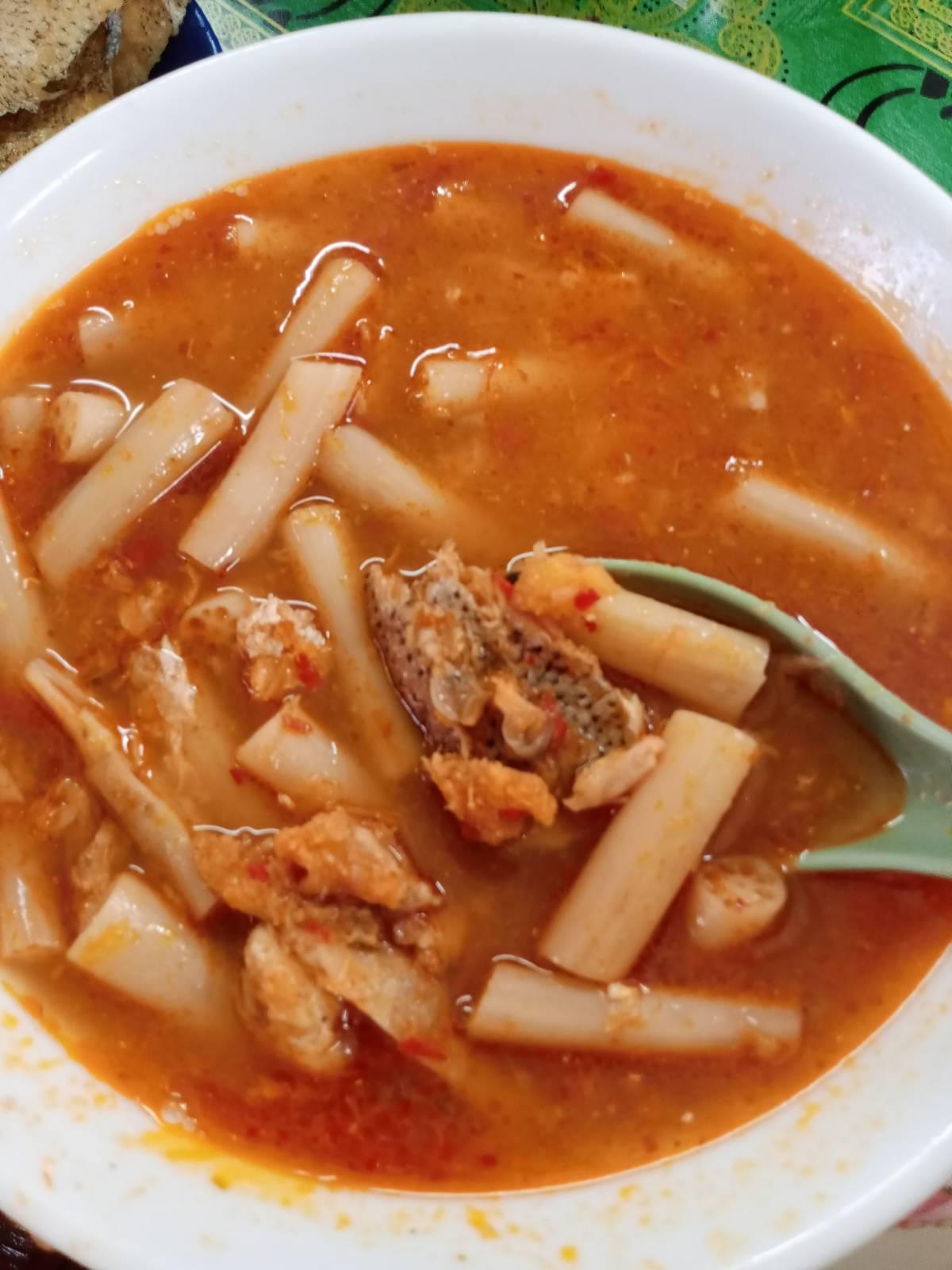 ปลาทอดยังมี แม่ผมก็เลยเอาเนื้อปลามาใส่แกง น้ำแกงส้มก็ไม่คาว กินง่าย