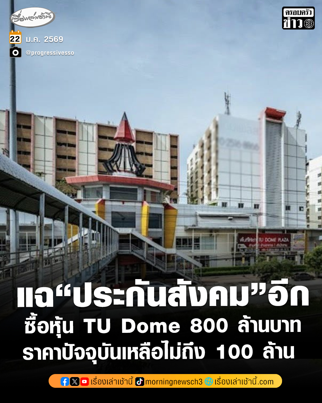 ไม่ใช่แค่โรงอาหารกระทรวงแรงงาน-ตึก SKY9! “ประกันสังคมก้าวหน้า” แฉอีก ประกันสังคมยังลงทุนใน TU Dome ซื้อหุ้น 800 ล้าน แต่ปัจจุบันราคาหุ้นเหลือไม่ถึง 100 ล้านบาท ย้ำถ้าไม่อยากให้เงินไปลงทุนแบบนี้อีก ต้องนำประกันสังคมออกนอกระบบราชการ