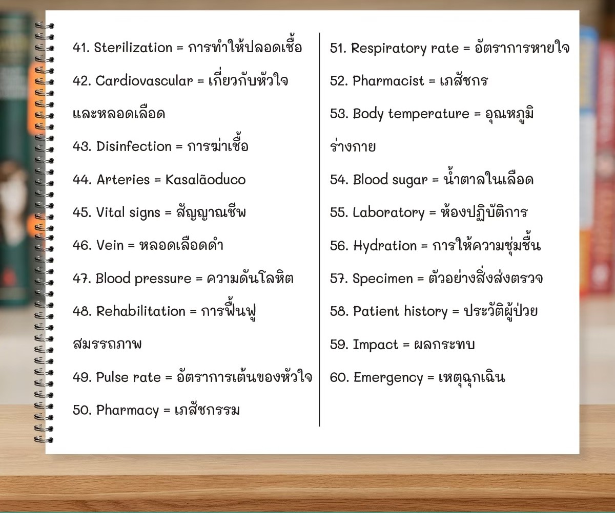 วันนี้ผมรวบรวม "100 คำศัพท์ทางการแพทย์ภาษาอังกฤษ" พร้อมคำแปลภาษาไทยแบบเข้าใจง่ายมาฝากครับ มีประโยชน์มากสำหรับ: