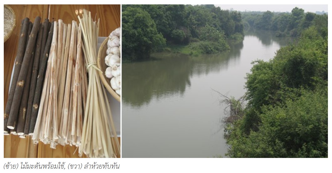 ไม้ที่เสียบ นายโพธิ์ไปตัดไม้มะดันป่า ที่ขึ้นอยู่ริมห้วยทับทันมาเสียบไก่
