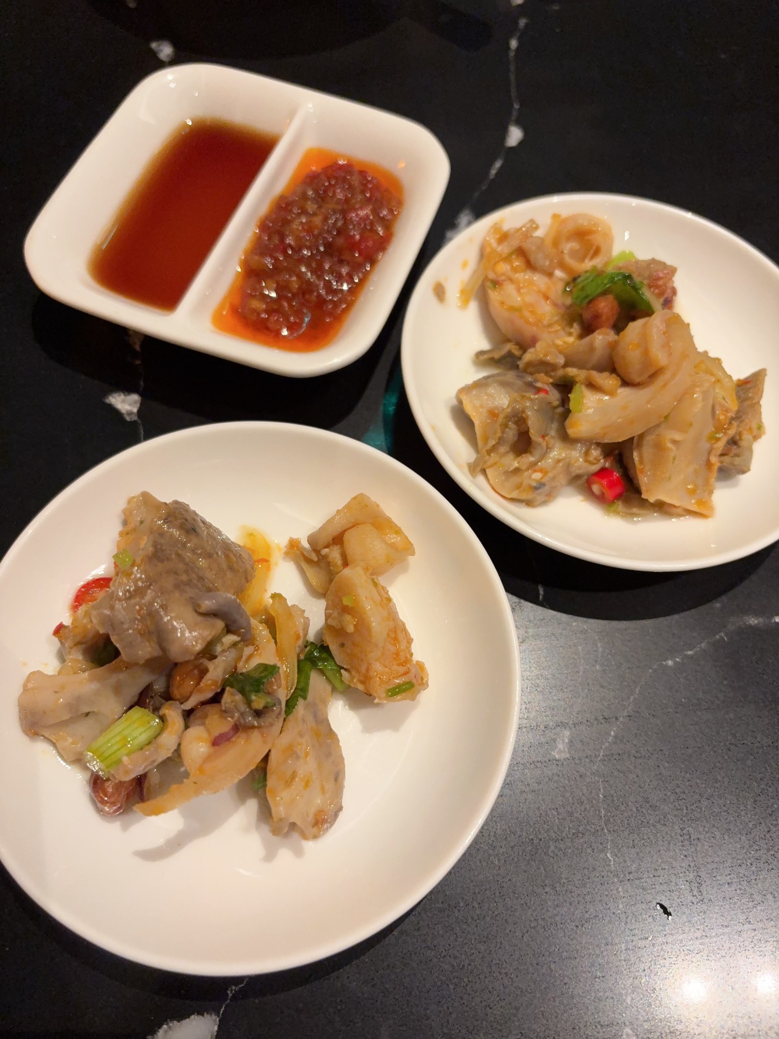 ระหว่างรออาหารมีออเดิฟมาเสริฟ์ เป็นเหมือนยำ หอยสังข์-หมู ค่ะ