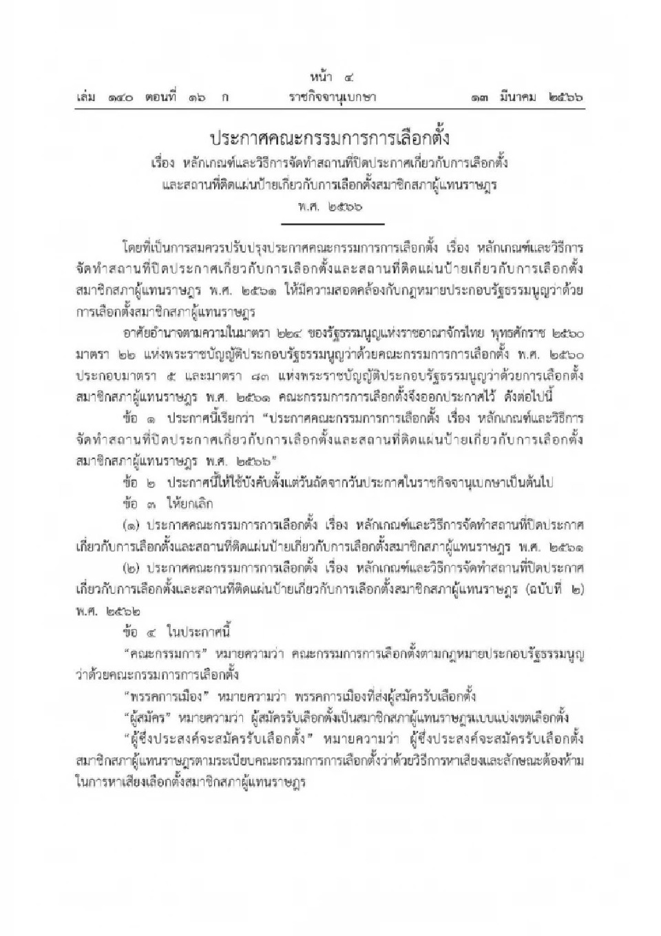 การจัดทำป้ายหาเสียงต้องเป็นไปตามประกาศ กกต. พ.ศ. 2566 โดยป้ายทั่วไปมีขนาดไม่เกิน 130 x 245 เซนติเมตร ต้องระบุชื่อผู้ว่าจ้าง ผู้ผลิต จำนวน และวันผลิตให้ชัดเจน ขณะที่ประกาศขนาดเล็กไม่เกิน 30 x 42 เซนติเมตร ส่วนป้ายหน้าที่ทำการพรรคหรือศูนย์ประสานงาน ติดตั้งได้เขตละ 1 แผ่น ขนาดไม่เกิน 400 x 750 เซนติเมตร ด้านจำนวน ผู้สมัครแบบแบ่งเขตติดป้ายได้ไม่เกิน 2 เท่าของหน่วยเลือกตั้งในเขต และพรรคการเมืองได้ไม่เกิน 1 เท่าของหน่วยเลือกตั้งในจังหวัด เพื่อรักษาความเป็นระเบียบและความเป็นธรรม