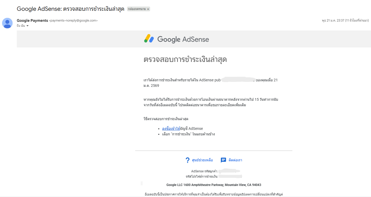 ในที่สุด เงินก้อนแรก Google Adsense จากการเล่นพันทิป ก็มาแล้วค่า ใช้เวลา 2 ปี ค่ะ
