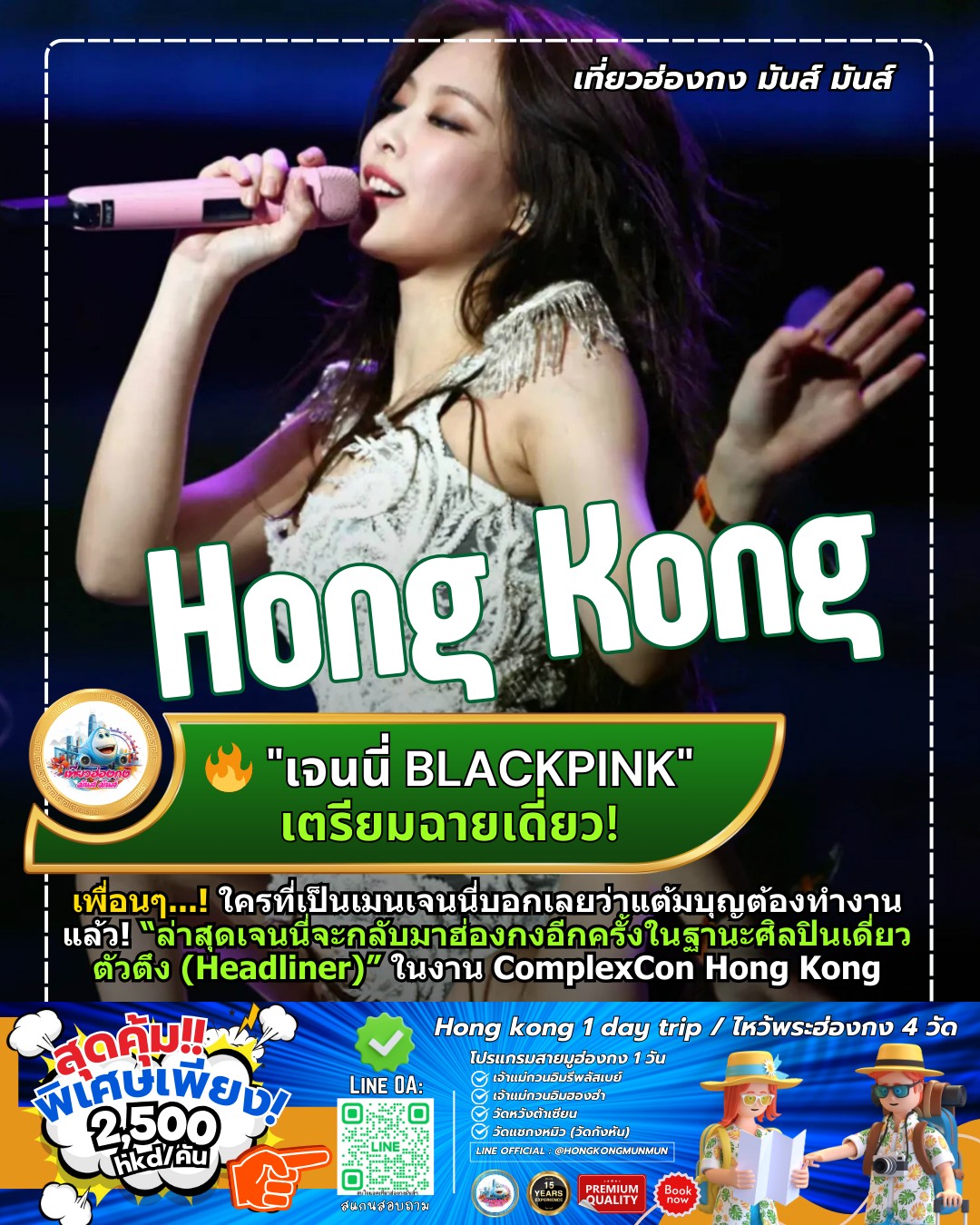 เพื่อนๆ.. ใครที่เป็นเมนเจนนี่บอกเลยว่าแต้มบุญต้องทำงานแล้ว! เพราะล่าสุดมีการประกาศออกมาว่า เจนนี่ (Jennie) จะกลับมาฮ่องกงอีกครั้งในฐานะศิลปินเดี่ยวตัวตึง (Headliner) ในงาน ComplexCon Hong Kong 2026 วันอาทิตย์ที่ 22 มีนาคมนี้