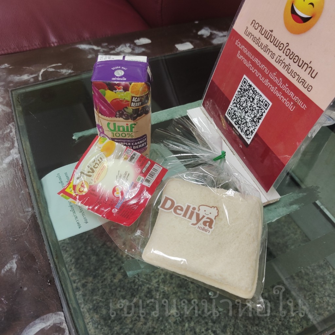 ออกไปรับของกินตามระเบียบ ^^ น้ำผลไม้ แซนวิช ไข่ต้ม ครับ