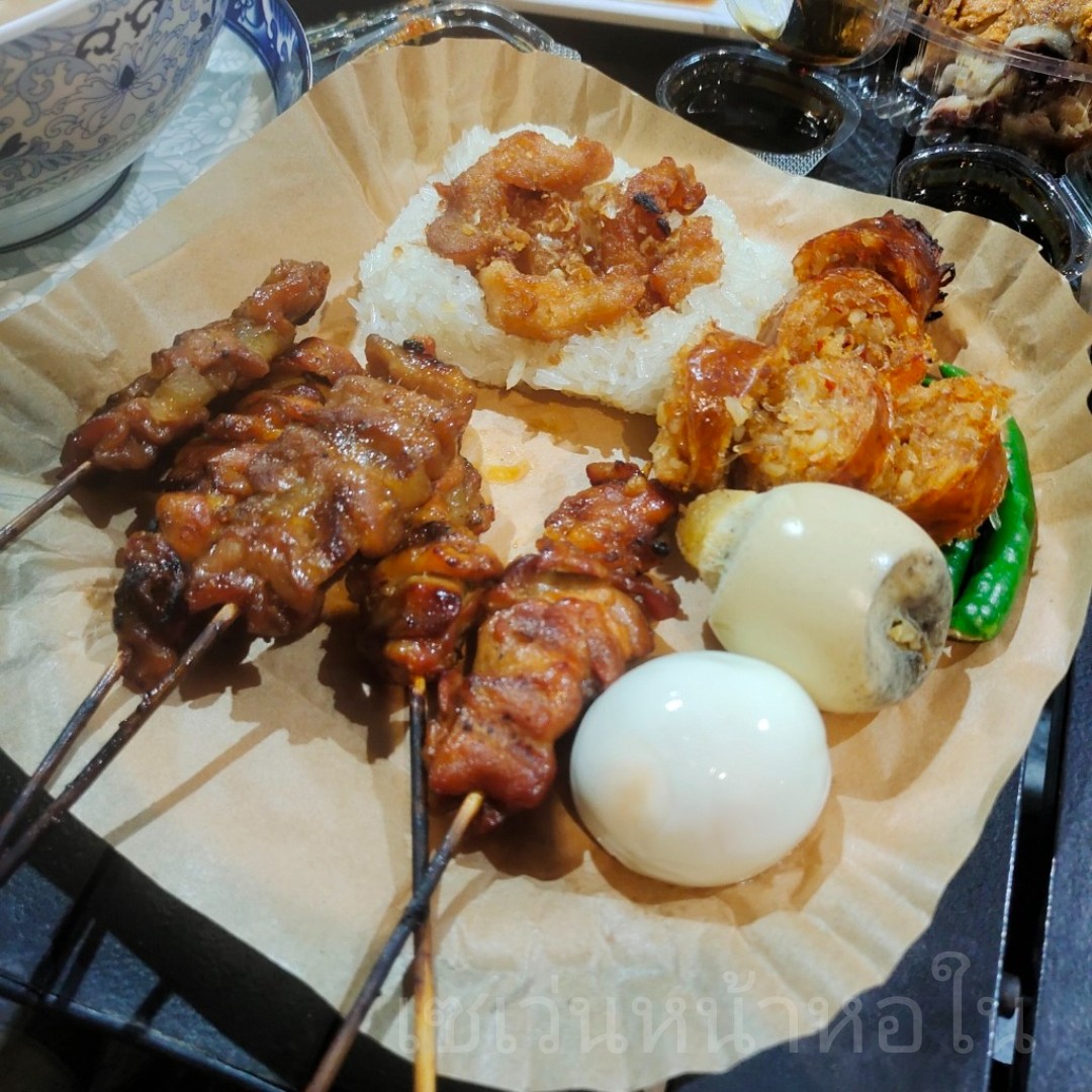 ไก่ย่าง หมูย่าง ผมซื้อมาตั้งแต่วันเสาร์ เอามาอุ่นกินได้ครับ
