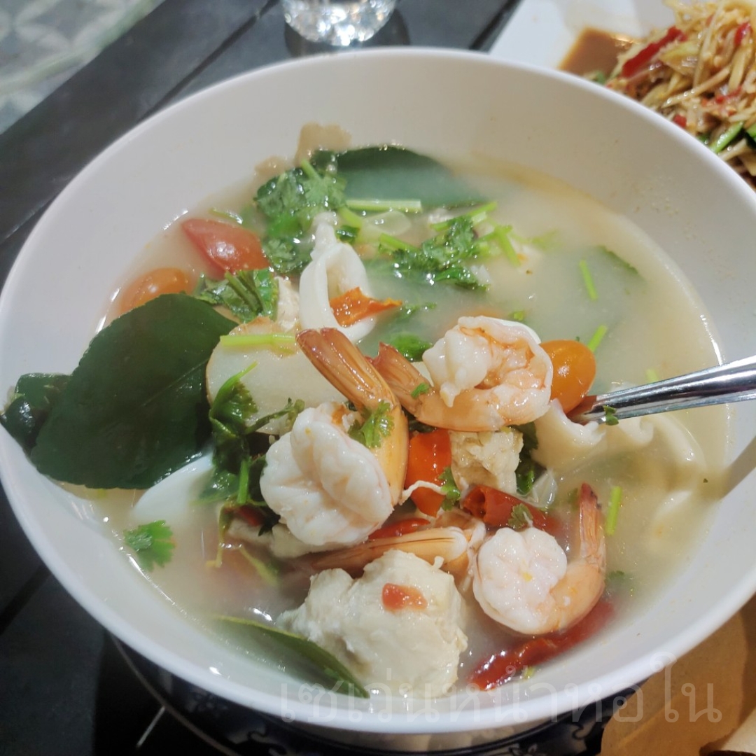 ต้มยำทะเลน้ำใส ซดน้ำร้อนๆ คล่องคอ อร่อยมากครับ กุ่ง หมึก ไก่ หมู ใส่มาจุกๆเลย