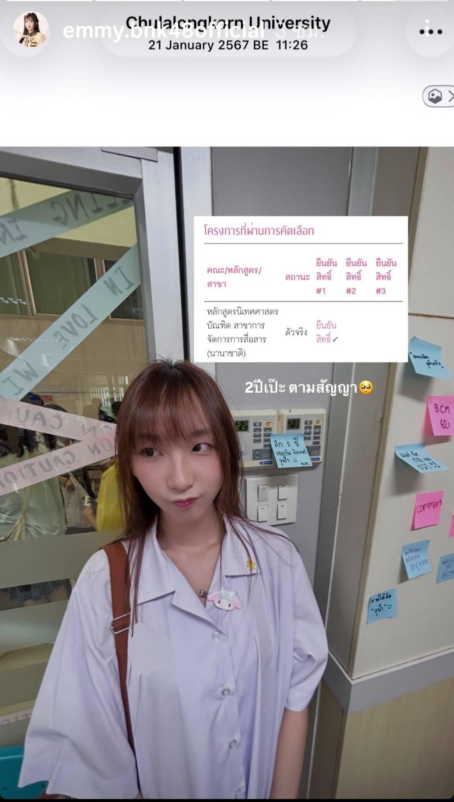 Emmy BNK48. สอบสัมภาษณ์ ผ่านแล้ว จุฬาลงกรณ์.. ส่วนแชมป์ประจำสัปดาห์ จาก jingjing CGM48 และต่อด้วย pancake BNK48