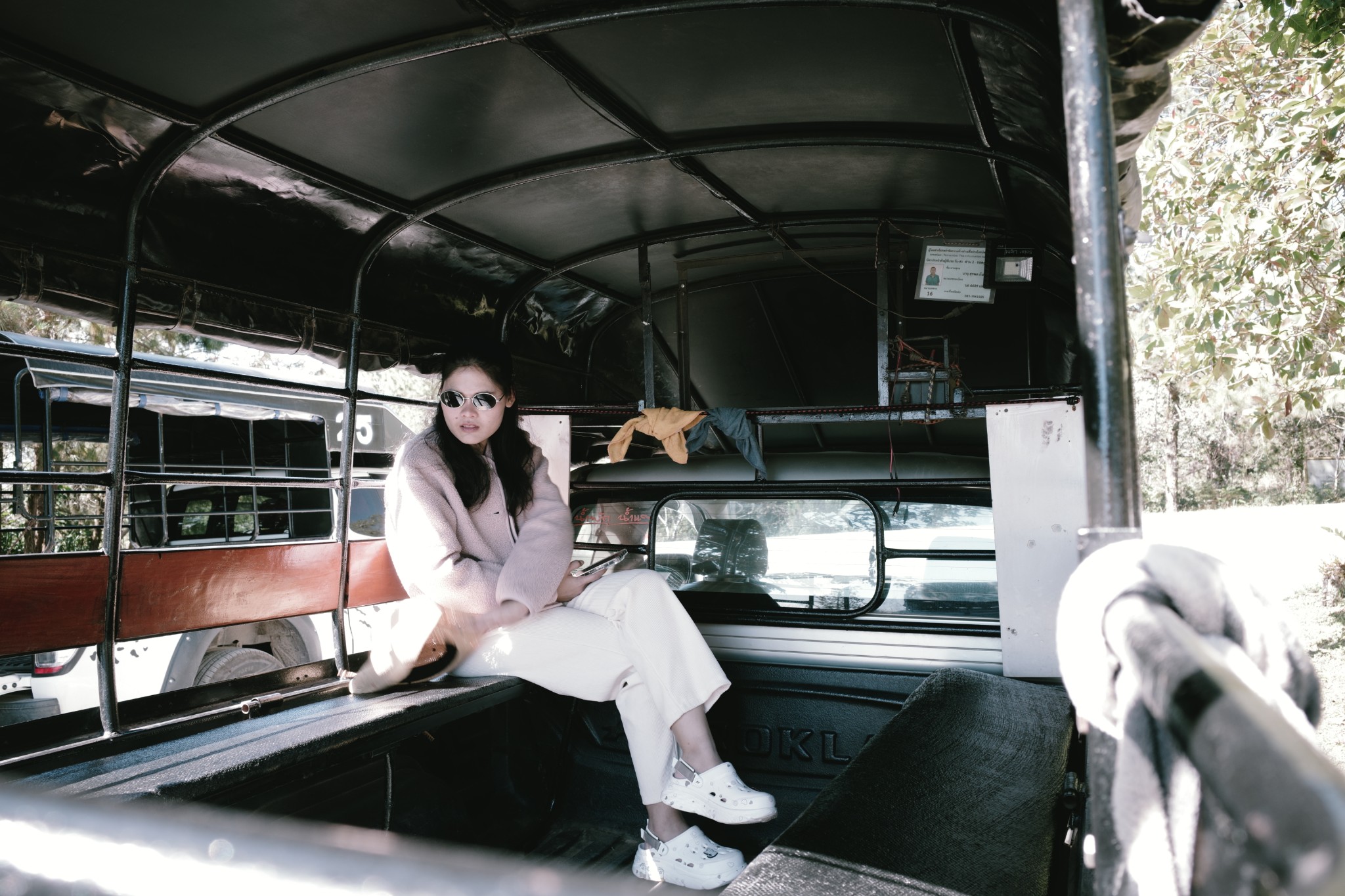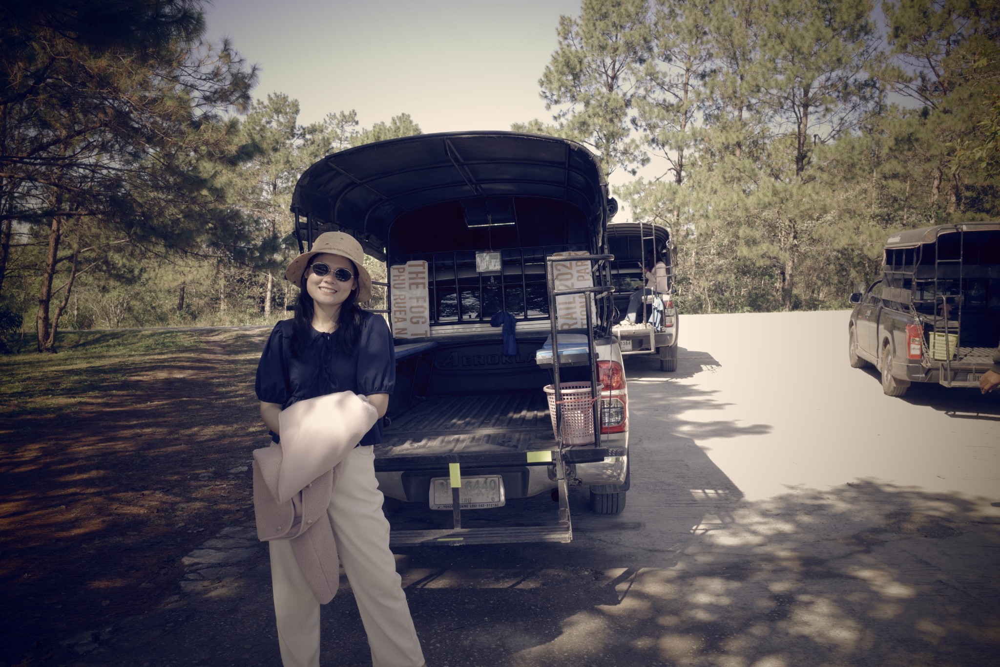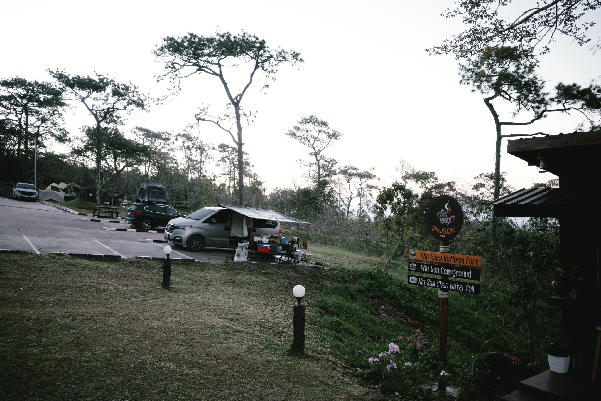 สิบโมงกว่าๆ เราออกจากลานเพื่อจะขึ้นไปชมวิวยอดภูเรือ คนอื่นอาจจะไปกันตอนเช้า แต่เราไม่อยากเหมือนใคร 555+ ไปตอนสายแล้วกัน เราเอารถมาจอดเพื่อขึ้นสองแถวไปด้านบน ไป-กลับ คนละ 20 บาทครับ หรือใครจะเดินไปก็ได้ แต่เราเลือกนั่งรถดีกว่าาา