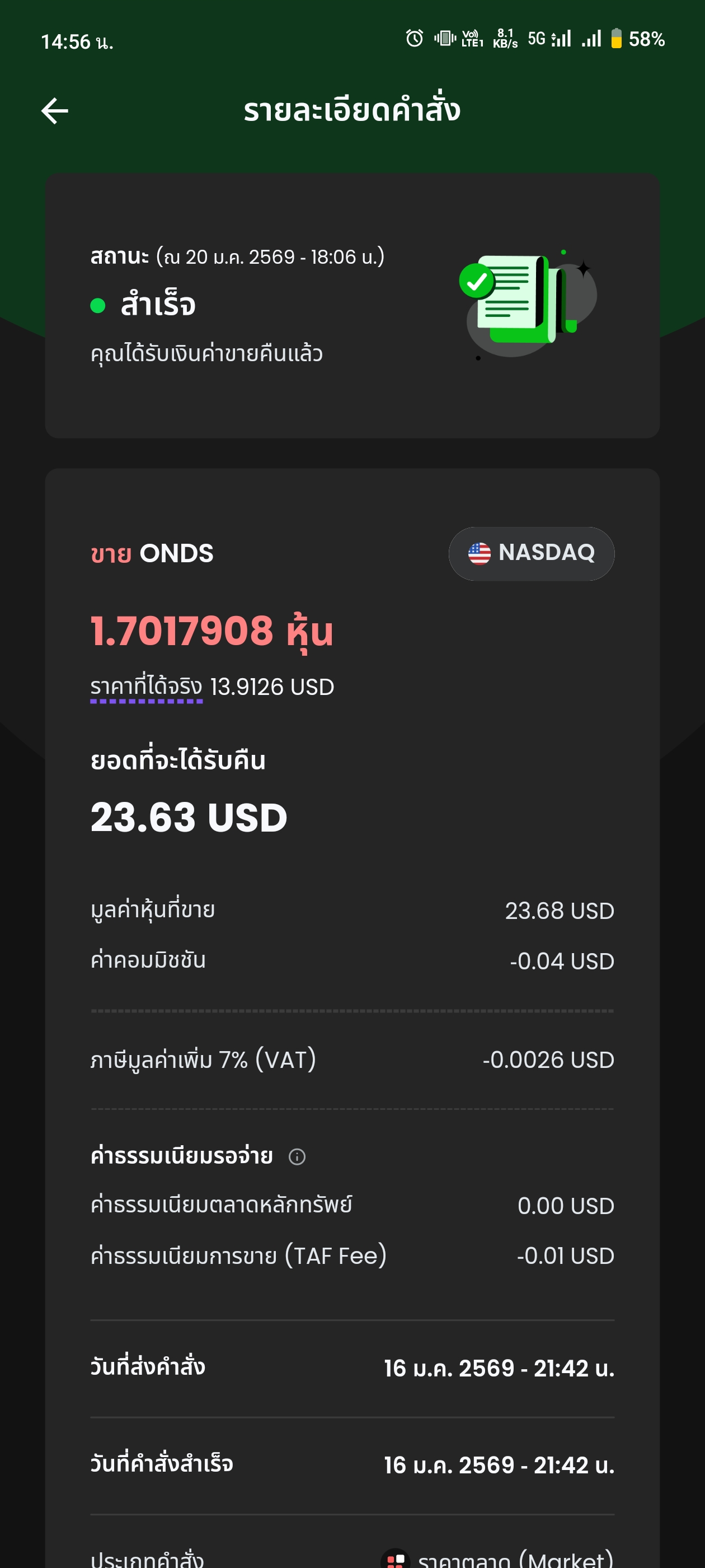 สวัสดีครับ ผมมีเรื่องจะสอบถามครับ ผมขายหุ้น 23.63 USD แต่ผมได้กลับมาแค่ 15.83 USD ก็เลยงงว่ามันตัดค่าอะไรบ้าง ทำไหมถึงหายไปเยอะ