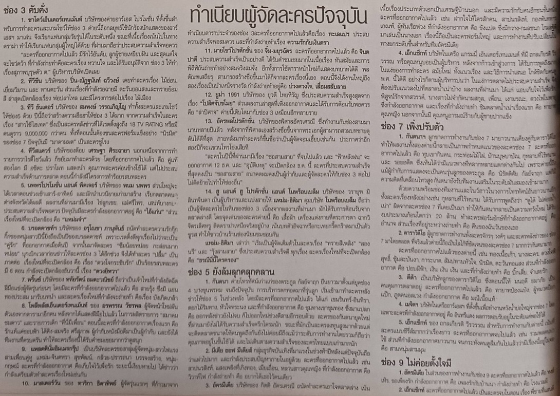 อ่านคำวิจารณ์ต่อละคร 2 ค่ายเทปยักษ์จากทางบ้านพร้อมเรื่องตัดสิทธิ์หนัง 2499ฯ เข้าชิงตุ๊กตาทองบทความตีพิมพ์ในหนังสือพิมพ์ข่าวสด, 8 สิงหาคม 2540 เฉพาะเรื่องละคร เดี๋ยวนี้ยังเป็นอย่างนั้นอยู่ไหม มาคุยกันไ