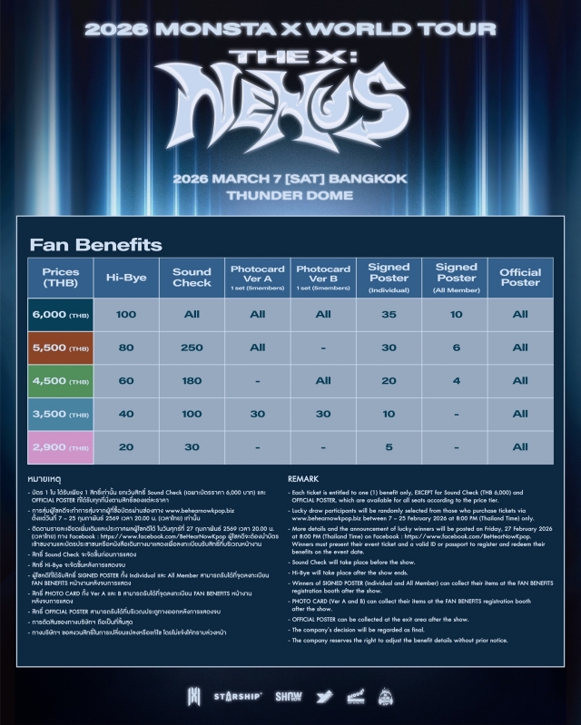 ผังมาแล้ว เบเนฟิตจัดเต็ม! MONSTA X เตรียมเสิร์ฟความฉ่ำเซอร์วิสมอนเบเบ้ไทย ในเวิลด์ทัวร์รอบ 7 ปี!