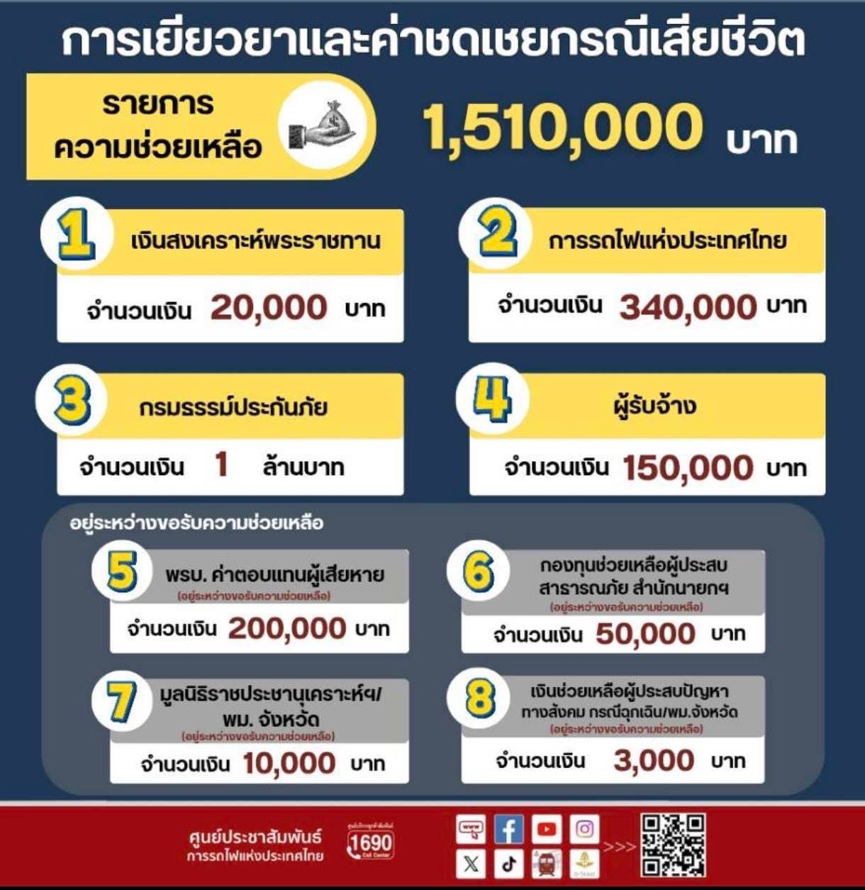 โดยมีการมอบเงินเยียวยาเบื้องต้นรวม 1,510,000 บาทต่อราย จากแหล่งเงินหลักได้แก่