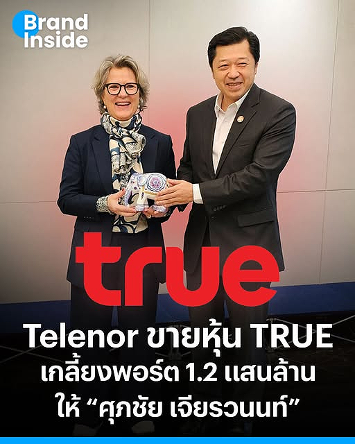 + Telenor ขายหุ้น TRUE ทั้งหมดให้กับ บริษัท Arise Digital Technology ของ ศุภชัย เจียรวนนท์