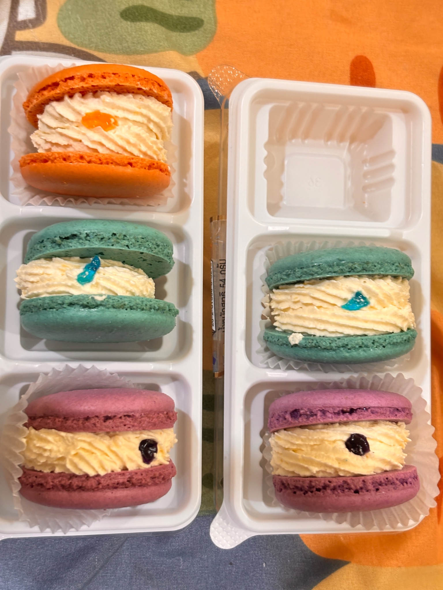 มาการรองของเซเว่นกล่องล่ะ 45 บาท น้ำหนักสุทธิ 54 กรัม 3 ชิ้น แบบนี้ปกติไหมคะ ทำไมมันดูไม่เท่ากัน??????
