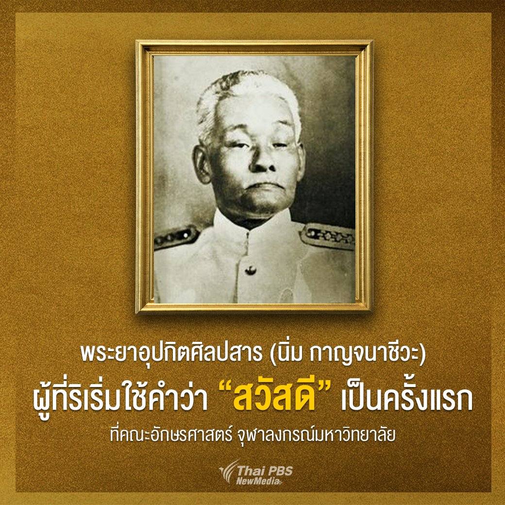 🙏 คำว่า “สวัสดี” บัญญัติโดย “พระยาอุปกิตศิลปสาร (นิ่ม กาญจนาชีวะ)” เริ่มนำมาใช้ครั้งแรกในปี 2476 ขณะที่ท่านเป็นอาจารย์อยู่ที่คณะอักษรศาสตร์ จุฬาลงกรณ์มหาวิทยาลัย โดยทดลองใช้ในคำว่า “สวัสดี” ในหมู่นิสิตก่อน