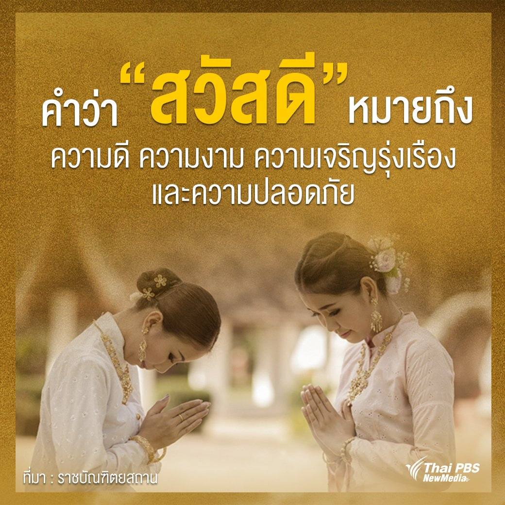 “สวัสดี (สวัสดิ์)” ว่าหมายถึง ความดี ความงาม ความเจริญรุ่งเรือง และความปลอดภัย การอวยชัยให้พร