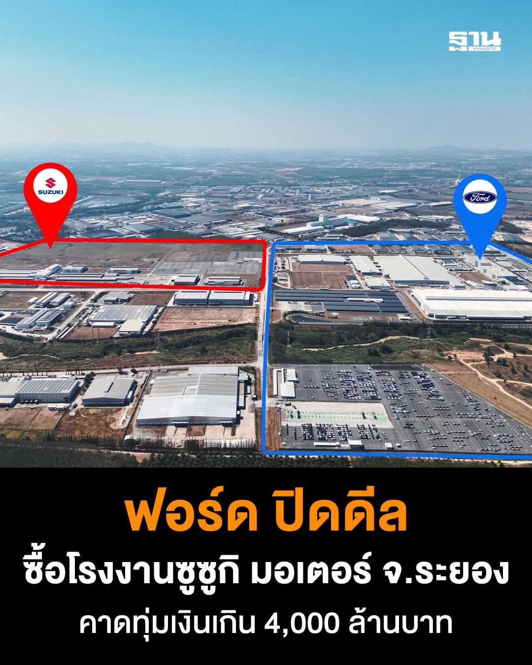 ฟอร์ด มอเตอร์ คัมปะนี รายงานว่า ได้ลงนามในสัญญาเข้าซื้อโรงงานผลิตรถยนต์เดิมของซูซูกิ มอเตอร์ จังหวัดระยอง ซึ่งตั้งอยู่ติดกับโรงงานฟอร์ด ไทยแลนด์ แมนูแฟคเจอริ่ง (FTM) โดยโรงงาน FTM และออโต้ อัลลายแอนซ์ ประเทศไทย (AAT) ถือเป็นหัวใจสำคัญของเครือข่ายการผลิตระดับภูมิภาค ทำหน้าที่ผลิตและส่งออกรถฟอร์ด เรนเจอร์ และฟอร์ด เอเวอเรสต์ ไปยังตลาดในและต่างประเทศ ตลอดกว่า 30 ปีที่ผ่านมา ฟอร์ดลงทุนในประเทศไทยสะสมมากกว่า 1.33 แสนล้านบาท