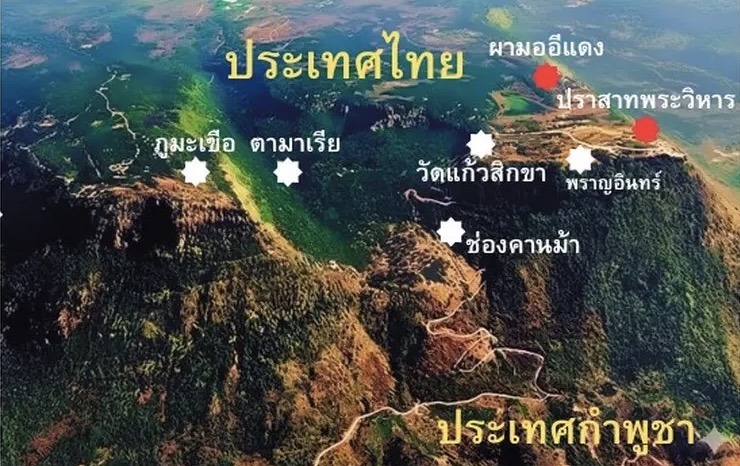 เขมร: ขยายการอ้างสิทธิ์เกินขอบเขต ปีนขึ้นพื้นที่สูง วางทุ่นระเบิด ตั้งฐานและจุดสังเกตการณ์ทางทหาร ยึดพื้นที่สูงและโบราณสถานเป็นฐานทางทหาร ใช้ปราสาทตาควายเป็นบังเกอร์ ทุ่งระเบิดสังหารเนิน 350 เขาพระวิหารเป็นฐานทหาร เสาสัญญาณโดรนโจมตี