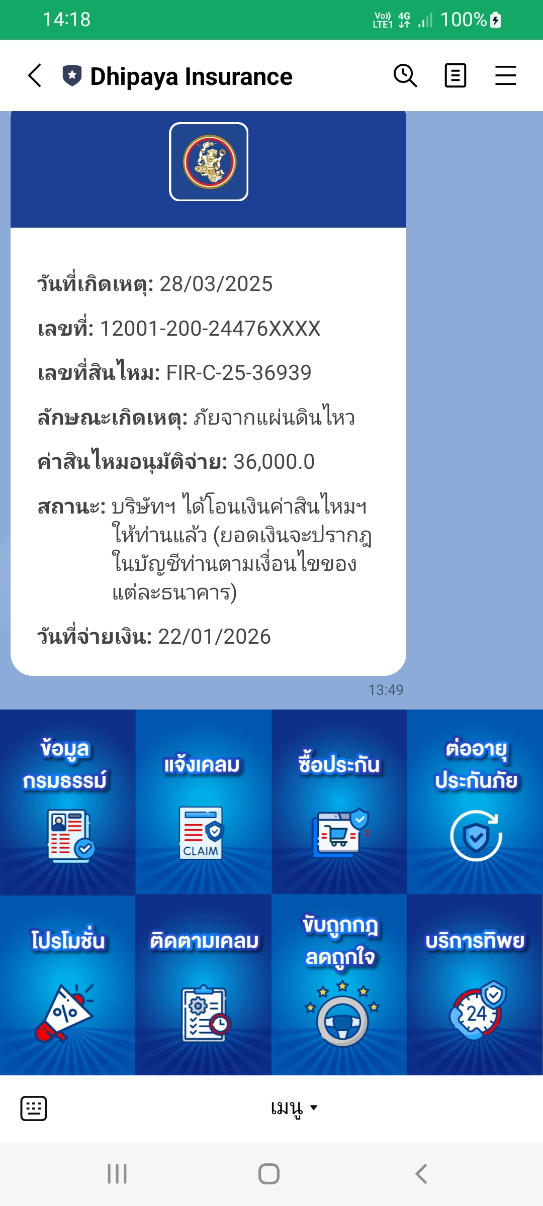 เคลมแผ่นดินไหวกะบ ทิพยประกันภัย วันทีจ่าย 22/01/2026 เงินยังไม่เข้าทำยังไงดี