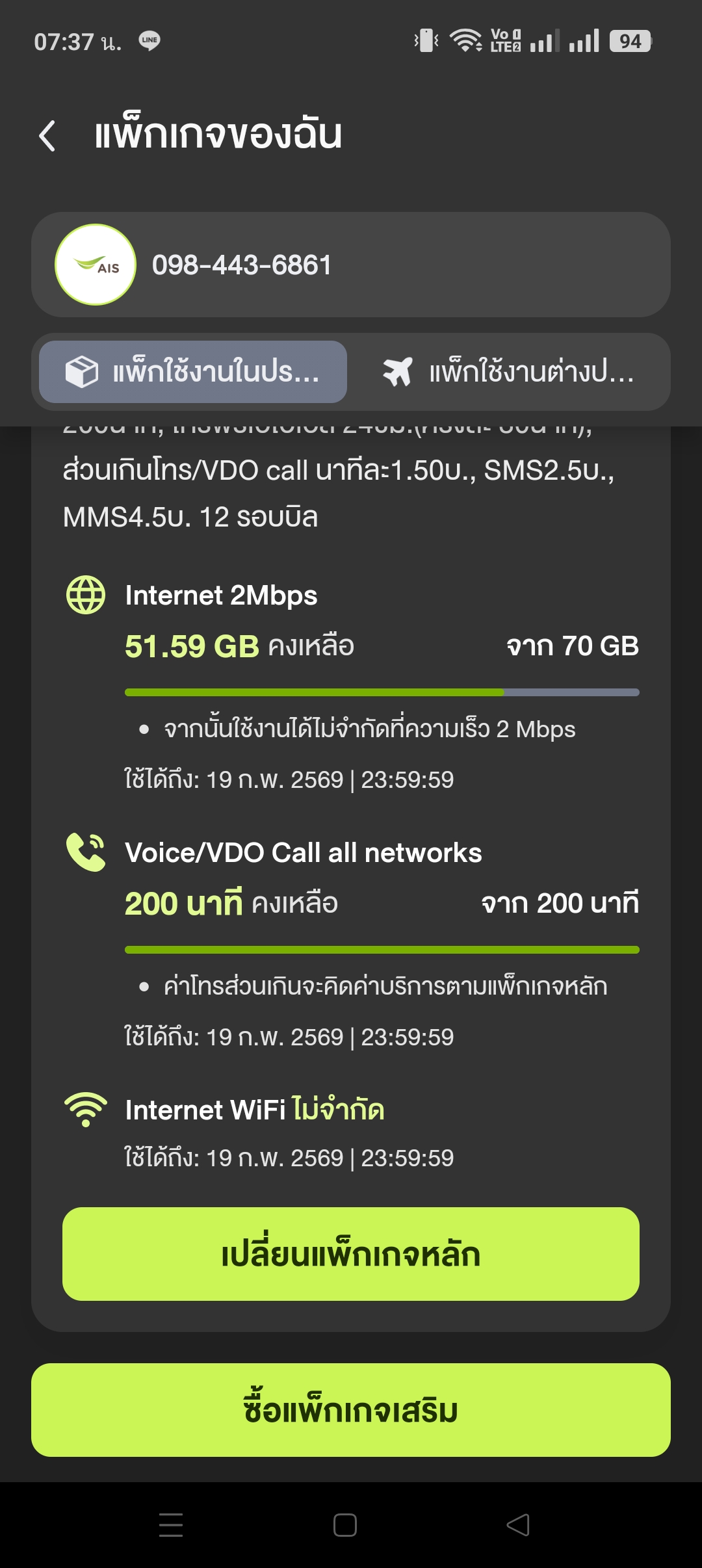 My ais ไม่มีปุ่มบกเลิกแพ็คเกจเน็ตรายเดือนแล้วเพิ่มเงินเอง