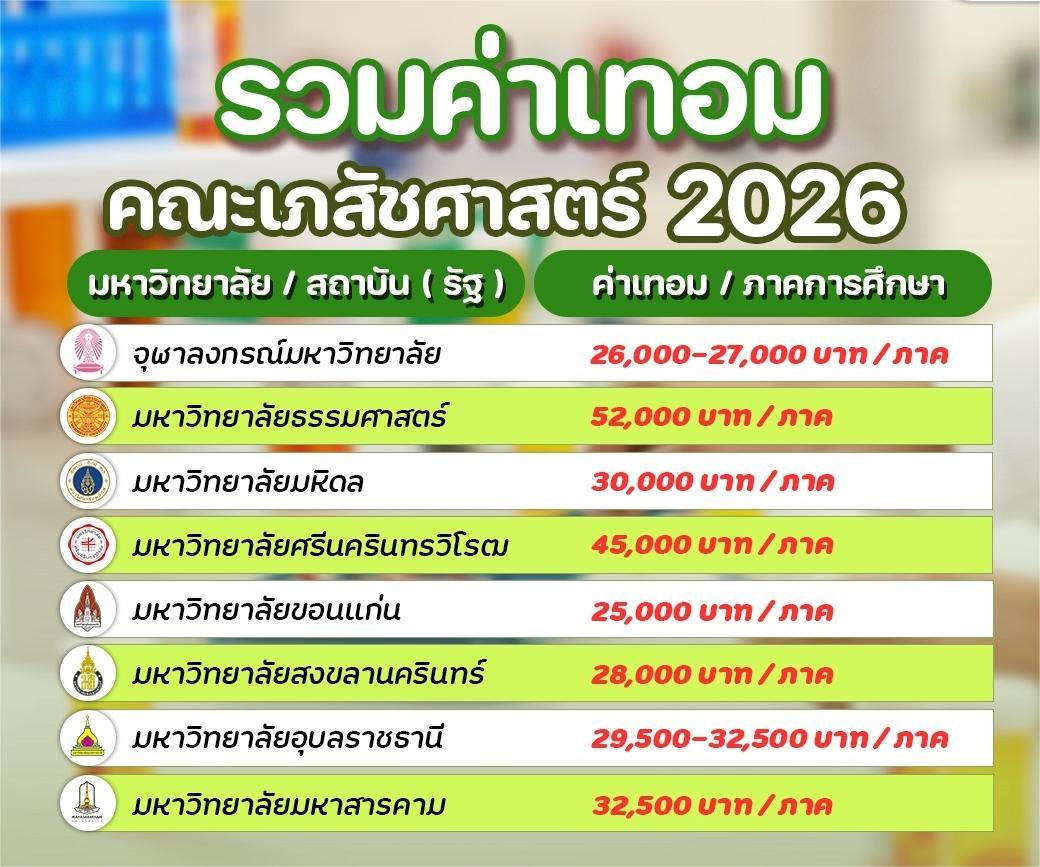 รวมมาให้แล้ว! ค่าเทอมคณะเภสัชศาสตร์ ปี 2026 ทั้งมหาวิทยาลัยรัฐและเอกชน