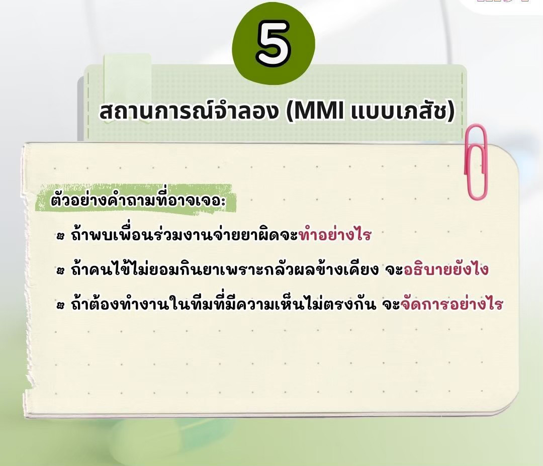 เตรียมรับมือคำถามวัดการตัดสินใจ เช่น เพื่อนจ่ายยาผิดควรทำอย่างไร หรือคนไข้ไม่ยอมกินยาควรแก้ปัญหาอย่างไร ต้องตอบอย่างเป็นระบบและมีเหตุผล