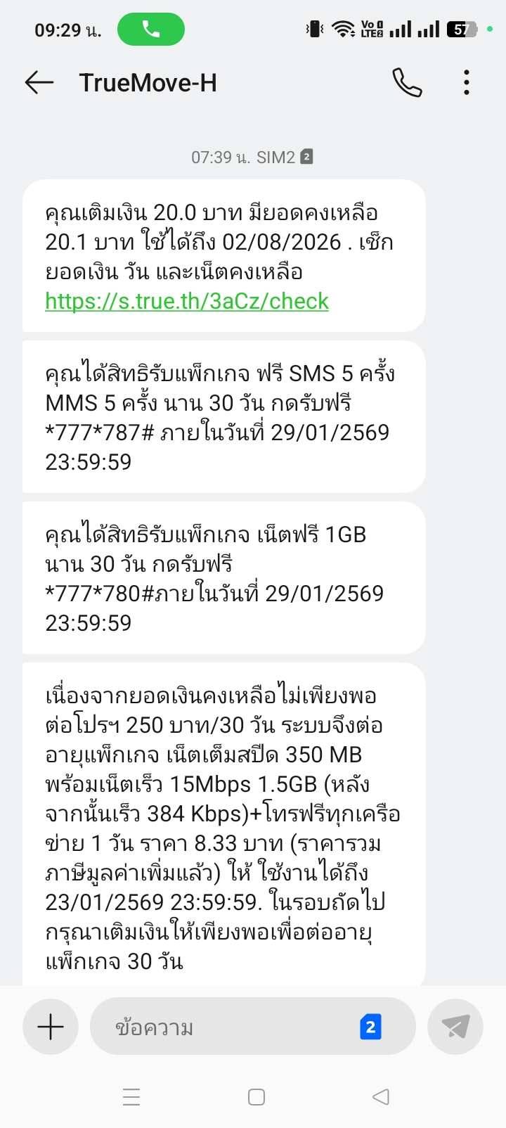 ข้อความเข้าว่ามีแพ็คเกจเน็ตและโทรฟรีทุกเครือข่าย 1 วัน แต่เวลาโทรโดนหาเงินจนหมดและครั้งต่อไปก็โทรไม่ได้อีก ข้อความตามรูปเลยค่ะ