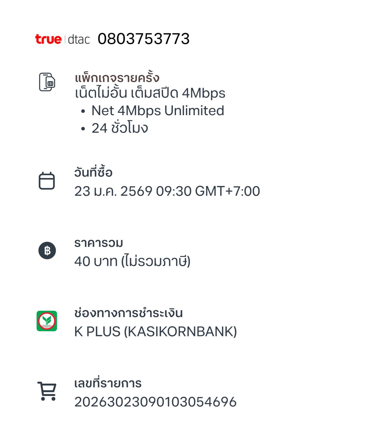 สมัครแพ็คเกจเน็ตทรู เลือกชำระผ่านธนาคารกสิกรไทย ทางธนาคารตัดเงินไปแล้ว มีข้อความจากทรูว่าสมัครไม่สำเร็จ…
