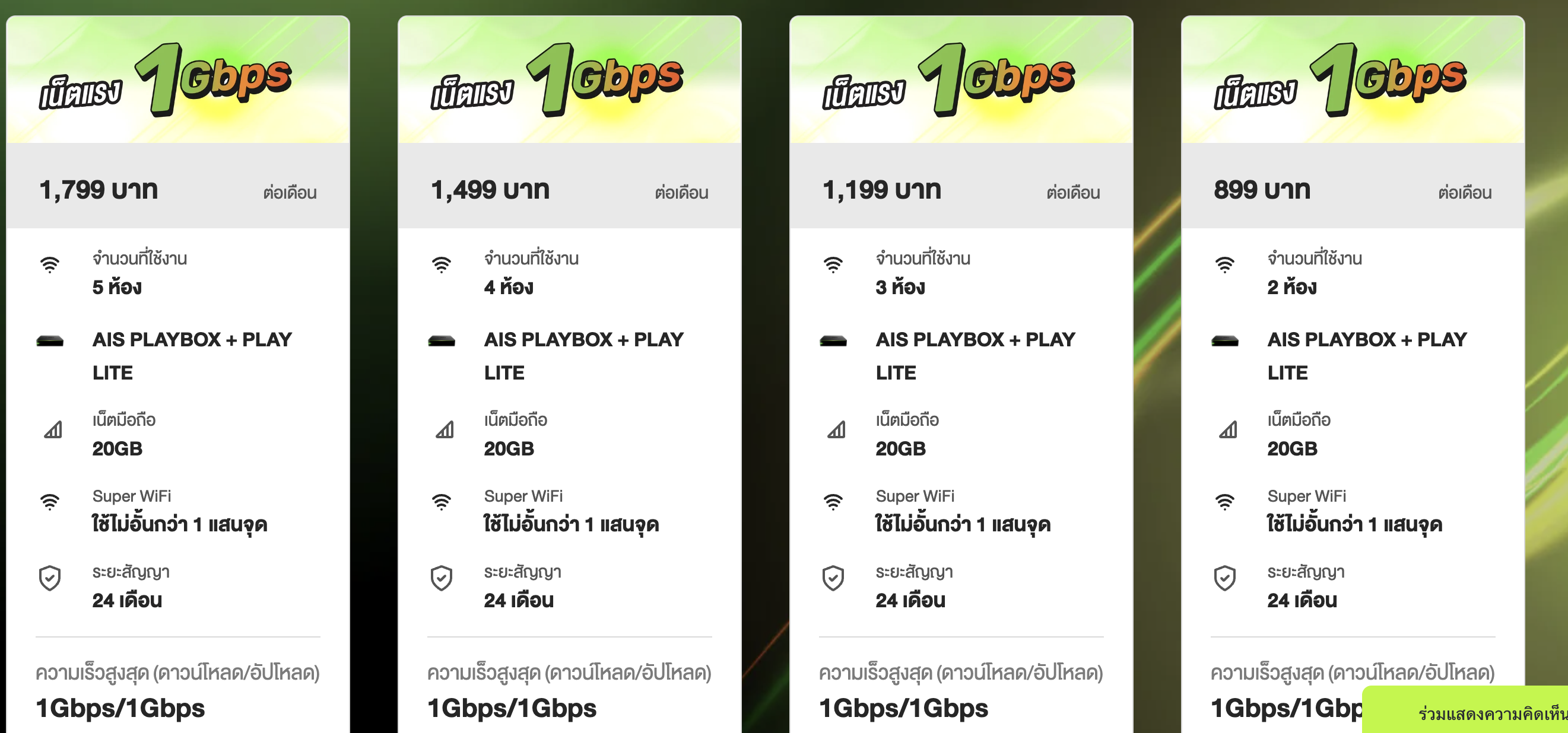 - 1Gbps * ตามจำนวนห้อง