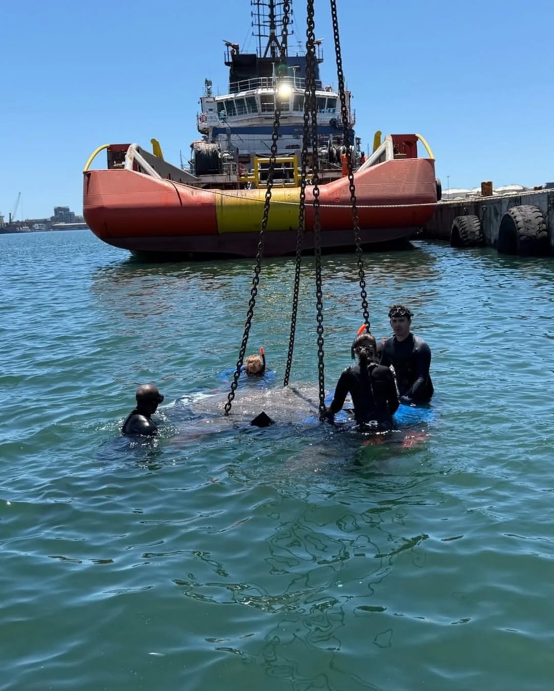 ตัวนี้ ความยาวประมาณ 2.5 เมตร และมีน้ำหนักประมาณ 1 ตัน หลงเข้าไปติดอยู่ภายในอู่เรือที่ถูกปิด และกำลังมีการระบายน้ำ
