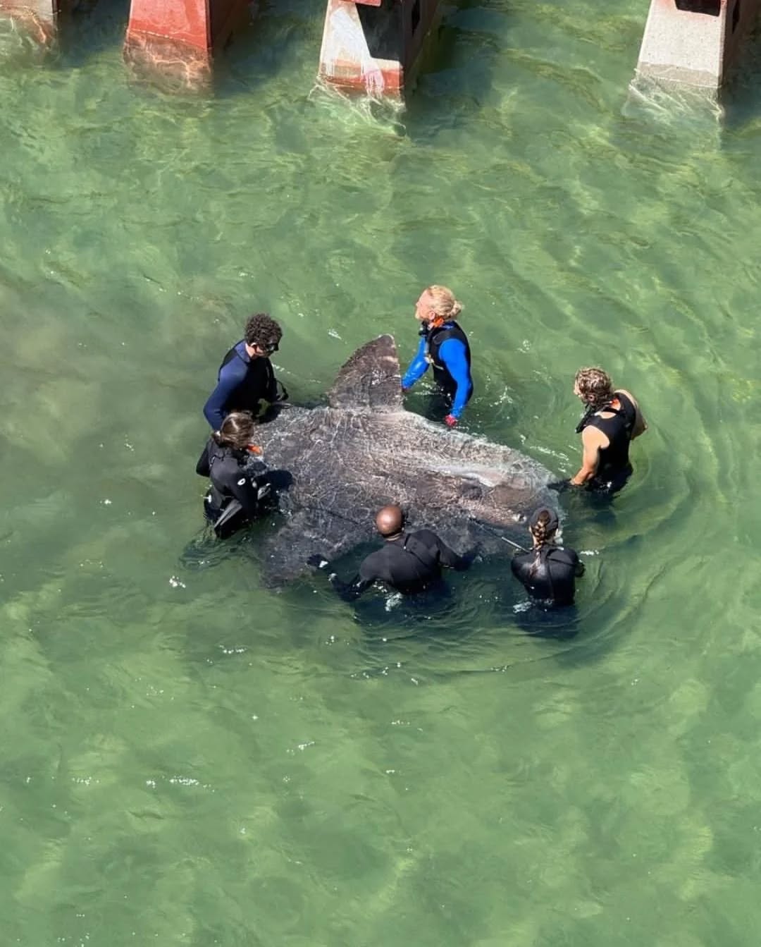 ในที่สุด ปลาแสงอาทิตย์ตัวโตก็สามารถกลับคืนสู่ท้องทะเลได้อย่างปลอดภัย