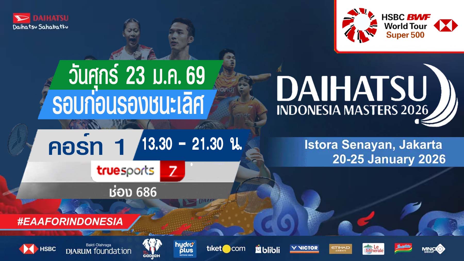 เชียร์สด ! แบดมินตัน DAIHATSU Indonesia Masters 2026 : รอบก่อนรองชนะเลิศ (23 ม.ค. 69) (คู่แรก 13.30 น.)