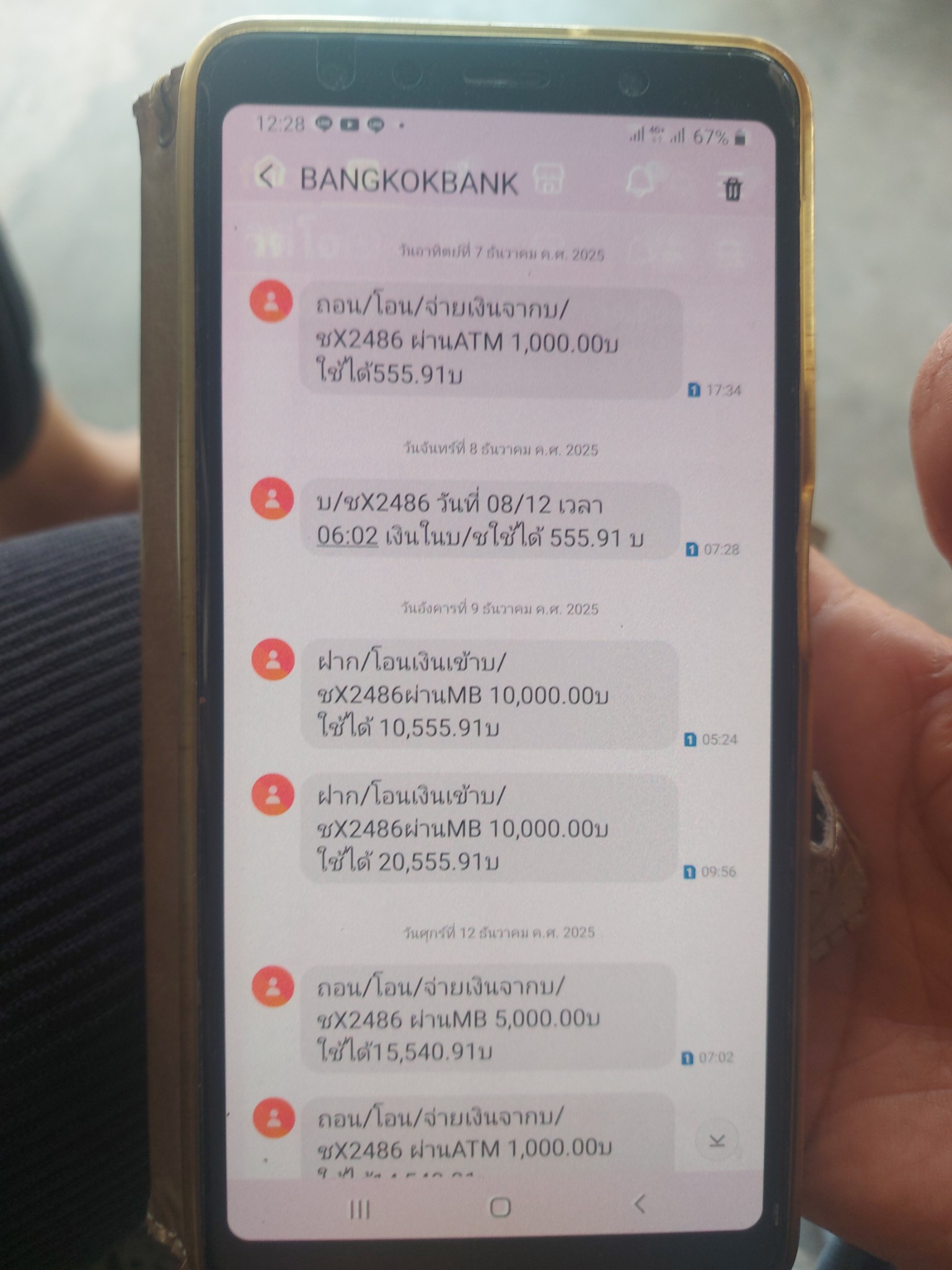 สวัสดีค่ะ รบกวนขอความกรุณาธนาคารกรุงเทพ ช่วยจัดการให้ด้วยค่ะ คือป้าแถวบ้านได้รับ SMS ข้อความการโอนเงินเข้าออกของบัญชีหนึ่งมาตั้งแต่วันที่ 7 ธันวาคม 2568 (ตามรูปที่แนบมา เคยโทรไป 1333 เพื่อช่วยขอให้ยกเลิกเบอร์นี้แล้วแต่ก็ยังมีข้อความ SMS เข้ามาอีก ไม่ทราบว่าจะทำอย่างไรได้บ้างคะ)