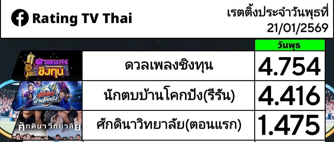 เรตติ้ง ช่องวัน พุธ 21/01/69 - Cr. Rating TV Thai