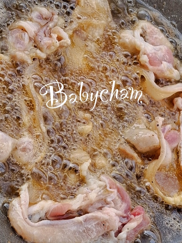 เมื่อวานแม่เปปไปเดินซุปเปอร์มาร์เก็ต แล้วเหลือบไปเห็น สามชั้นสไลด์ติดหนังเนื้อสวยมากๆ ว่าจะเดินผ่านแล้วค่ะ เพราะแม่เปปไม่ชอบกินสามชั้นติดหนังเคยซื้อที่เขาทอดแล้วมากิน เหนียวมากหนังแข็งจนต้องหักส่วนหนังออก แข็งจนเข็ดเลย แต่ที่เห็นขณะนั้นความสวยของเขา ทำให้หยุดยืนแล้วคิดในใจ ว่าจะทำเมนูอะไรดีน๊าาา