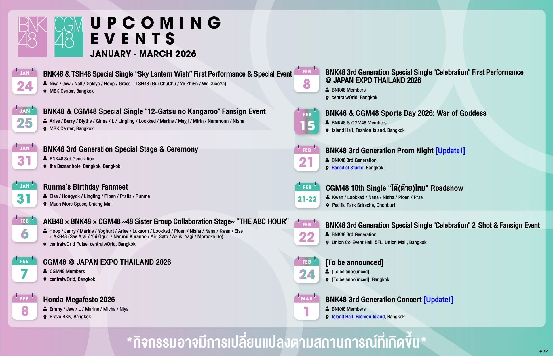 มาแล้ว!! ตารางงาน [BNK48 & CGM48 Upcoming Events] JANUARY - MARCH 2026