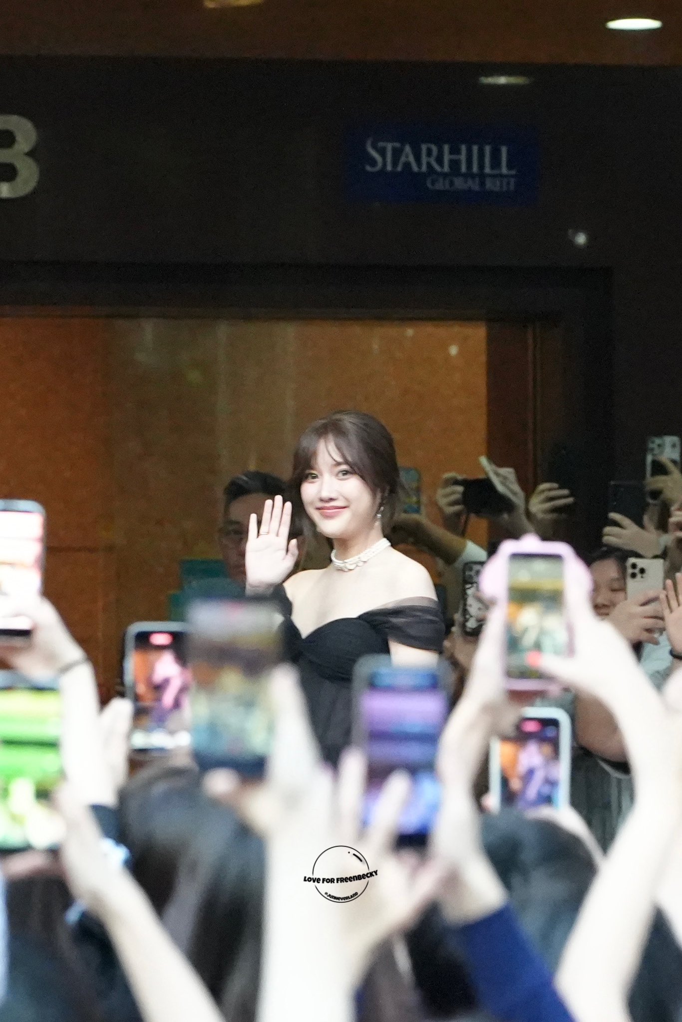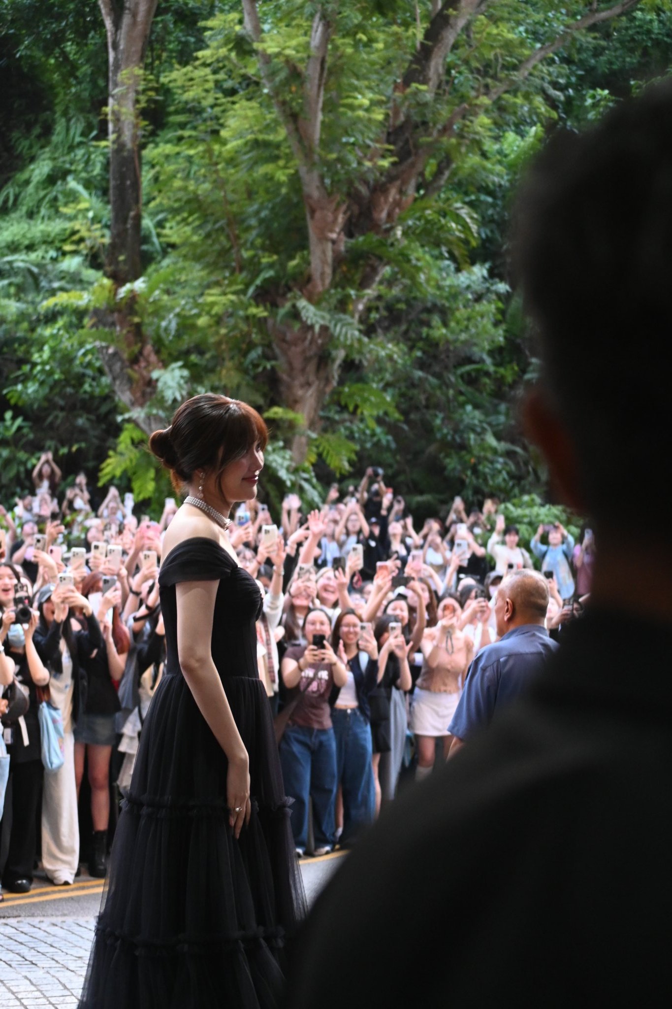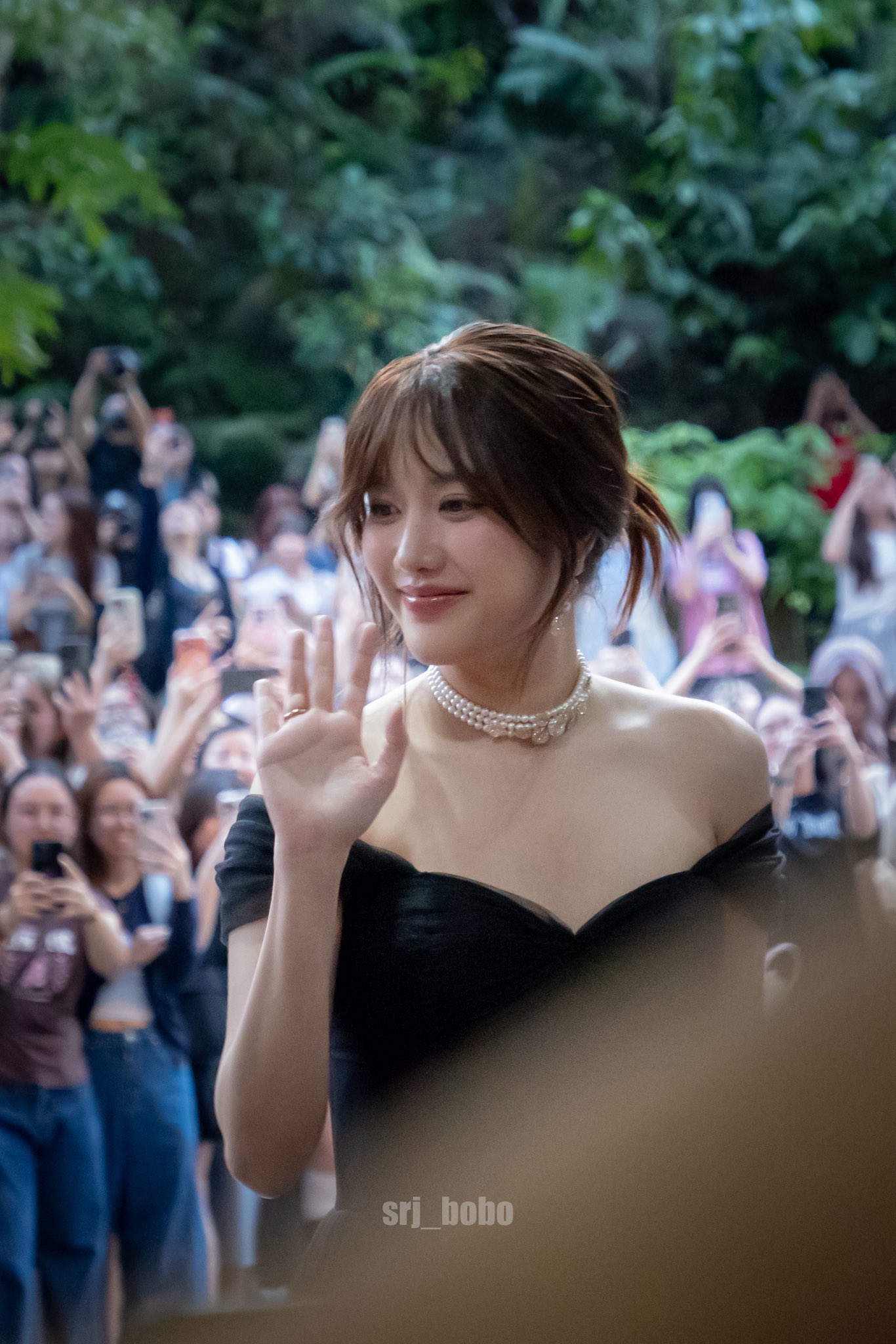 ที่เจ้าตัวมาในลุคชุดเดรสสีดำดีไซน์ที่ได้รับแรงบันดาลใจจากสไตล์อันประณีตของสุภาพสตรีในยุค 1950 ตัวเสื้อรัดรูปช่วยเสริมสัดส่วน ในขณะที่กระโปรงผ้าทูลล์หลายชั้นเพิ่มความพลิ้วไหวและงดงาม แมทช์กับเครื่องประดับ Mikimoto ที่โดดเด่นด้วยไข่มุก เพิ่มความหรูหราและความเรียบง่ายแบบทันสมัย บอกเลยว่าอวยยศอีก 3 วันก็ได้ไม่มีเบื่อ!!
