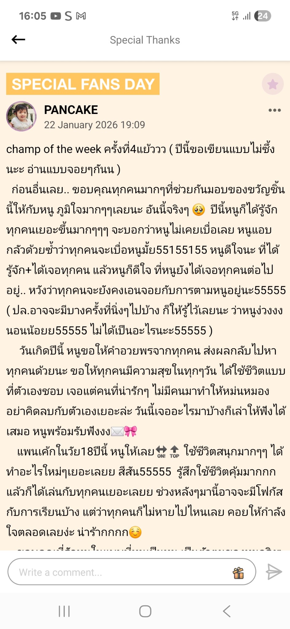 Champ of the week pancake BNK. และขึ้นแท่น รออยู่ Niya ถ่ายเซลฟี่ ,ปิดเที่ยงแบบจองเธียเตอร์ รอเปิดรอบด่วน ทำงานจนลืม