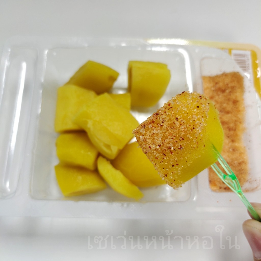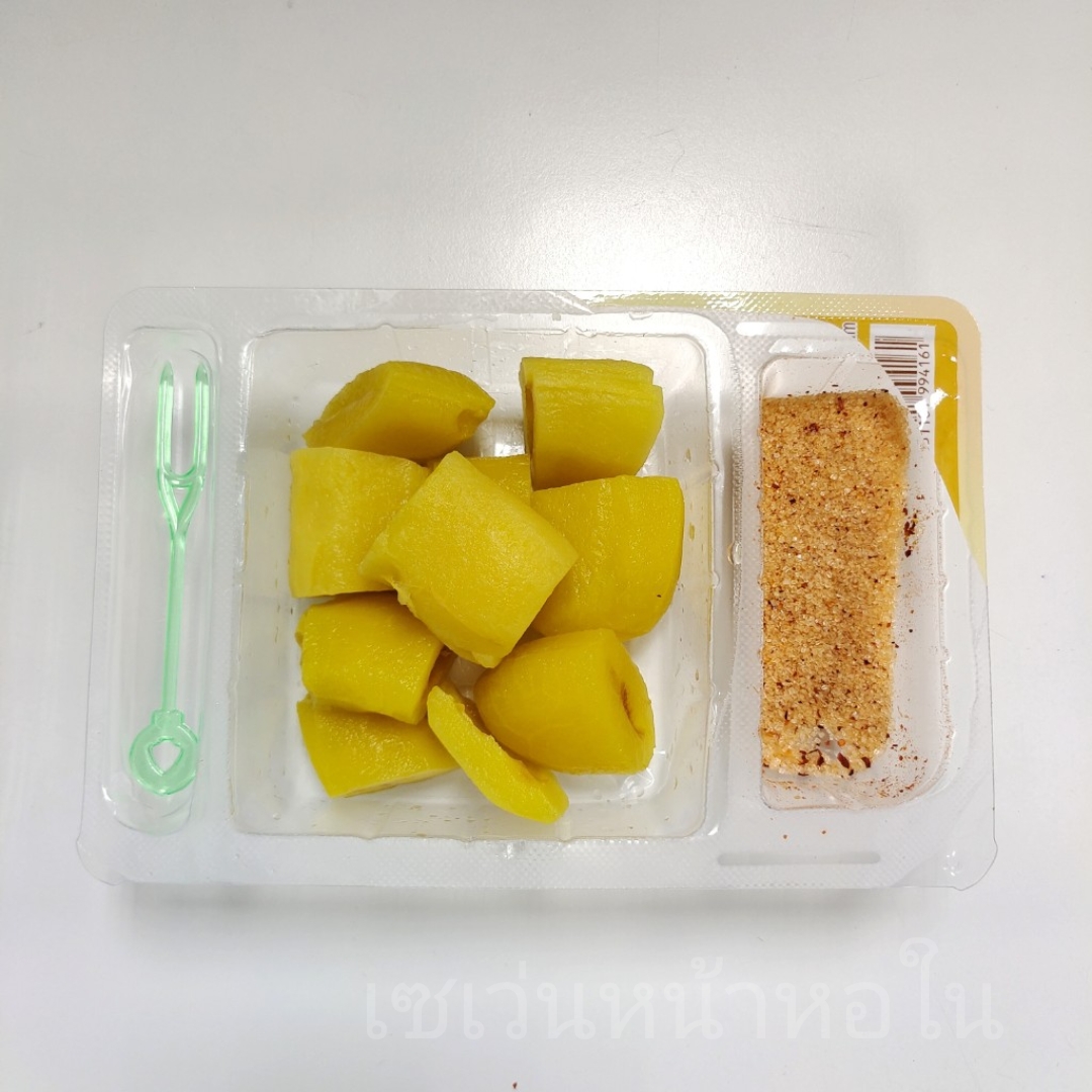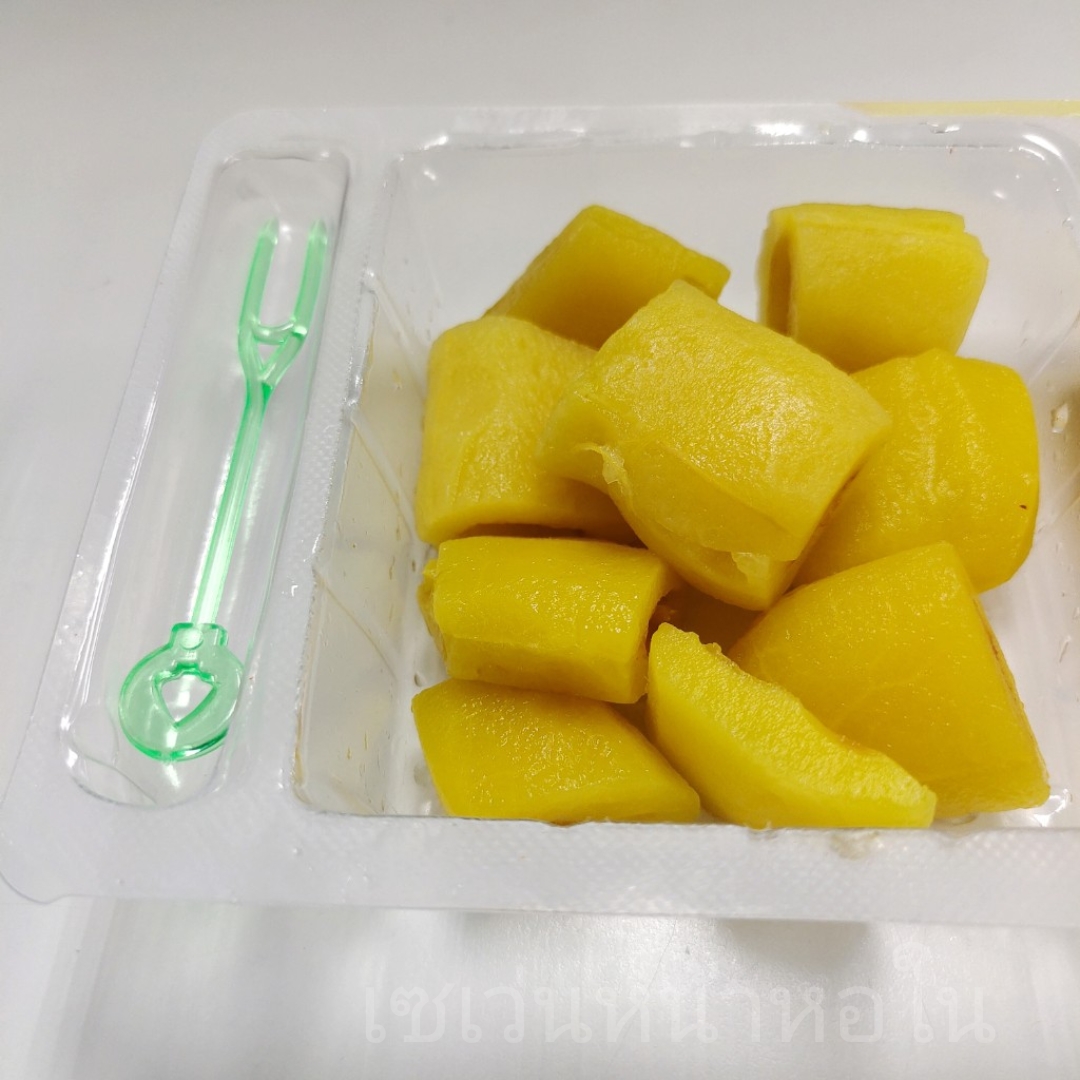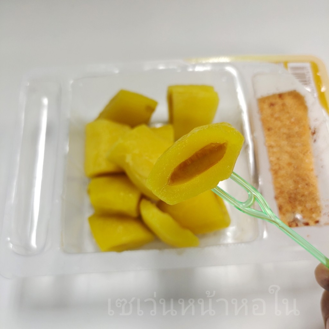 เปิดกล่องมา มีส้อมพลาสติกอันเล็กๆ มาให้1อัน พร้อมจิ้มกินได้เลย