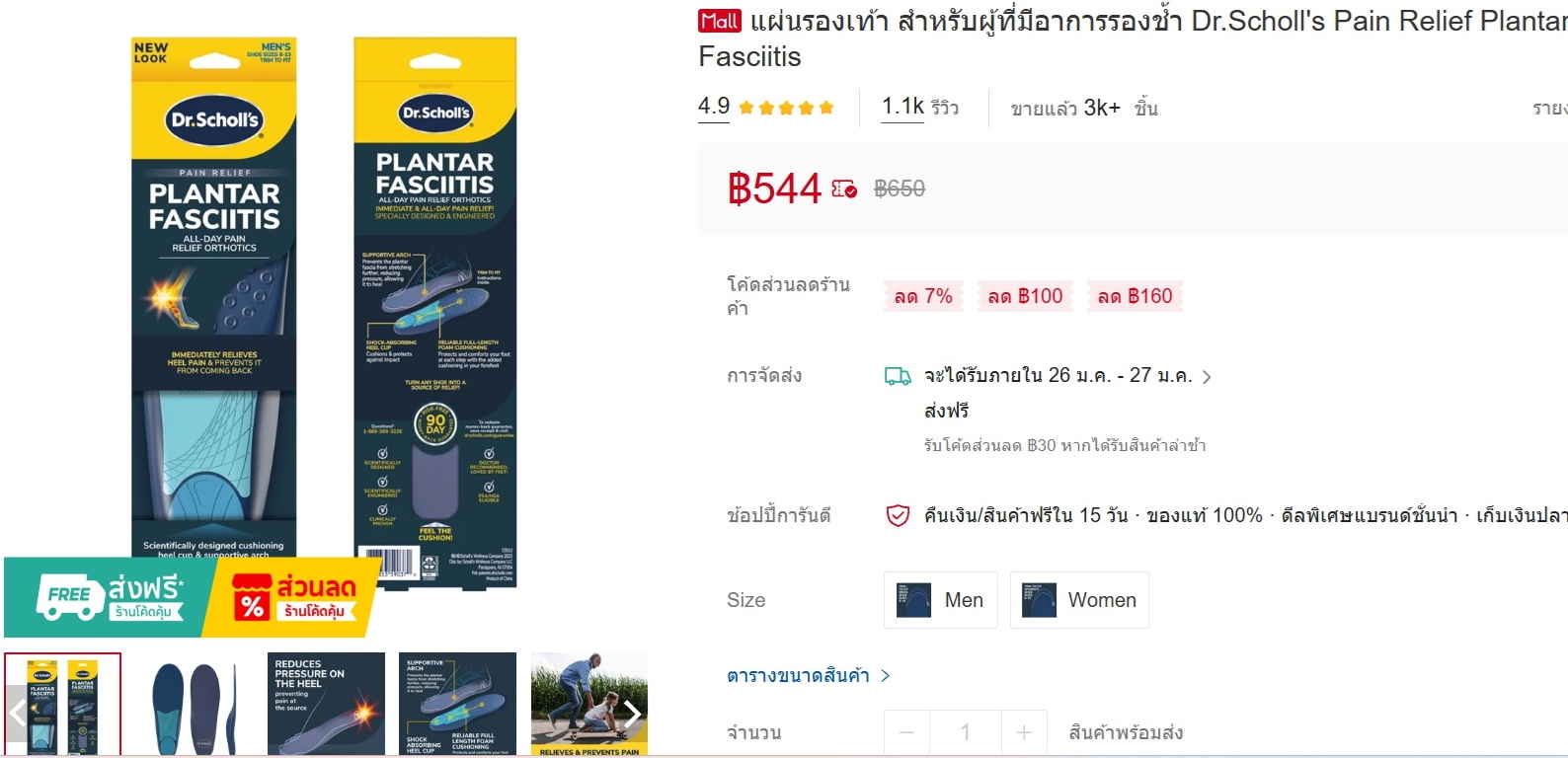 แผ่นรองเท้า สำหรับผู้ที่มีอาการรองช้ำ Dr.Scholl's Pain Relief Plantar Fasciitis ตรงกับอาการของผมแต่ว่า ผมสอบถามทางร้านแล้วได้รับการยืนยันว่า ..ขนาด: Size US ผู้ชาย: 8-13 US สามารถสวมใส่ได้ตั้งแต่ 41-46 EU ....