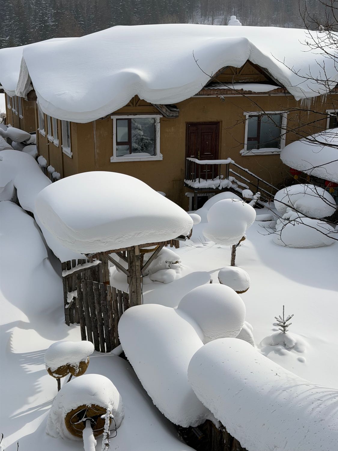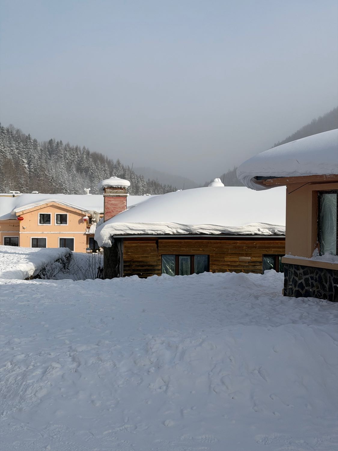 พอกินข้าวเสร็จ ยังงัวเงียเหมือนจะอยากนอนต่อ แต่มองลงไปด้านล่าง เห็นหิมะฟูกองโตสวยมาก เลยเปลี่ยนชุดสักหน่อย กะว่าจะลงไปถ่ายรูปเล่นๆแปบๆ ล้างหน้าแปรงฟัน น้ำยังไม่ทันอาบ ก็เดินลงไปดูความสวยงามในยามเช้าของ หมู่บ้าน Snow town